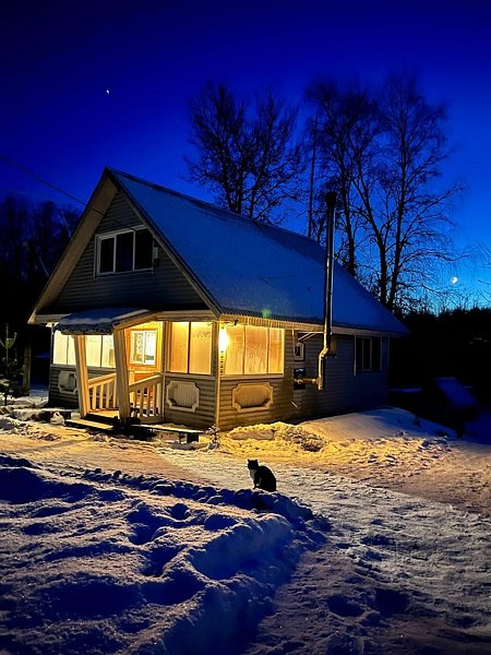 Семейный отдыхДостоинстваЧистота в домике, много посуды все чистое. Тапки полотенце белье застелено. Дрова наколоты. Мангал рядом с домом. Баня супер пар мягкий, лён на полоке лёжа не горячо париться. Очень все супер! Приедем летом на рыбалку))) НедостаткиНе указаны