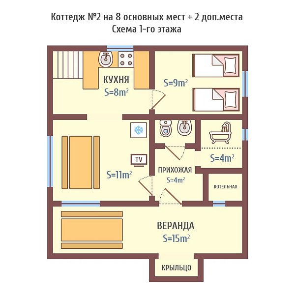120 м2 · 8-и местный дом + 2 доп. места