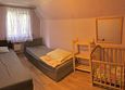 Размещение: первый этаж 1-ая спальня — две односпальные кровати-тахты (можно объединить), 2-ая спальня — три односпальные кровати, второй этаж 3-я спальня — две односпальные кровати-тахты (можно объединить).
