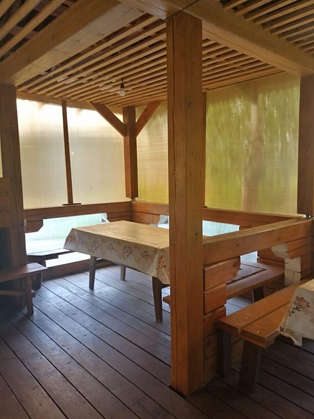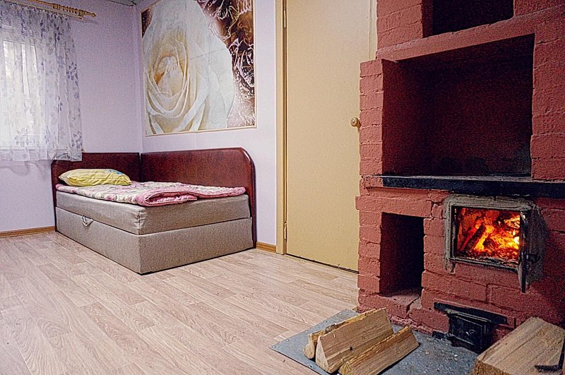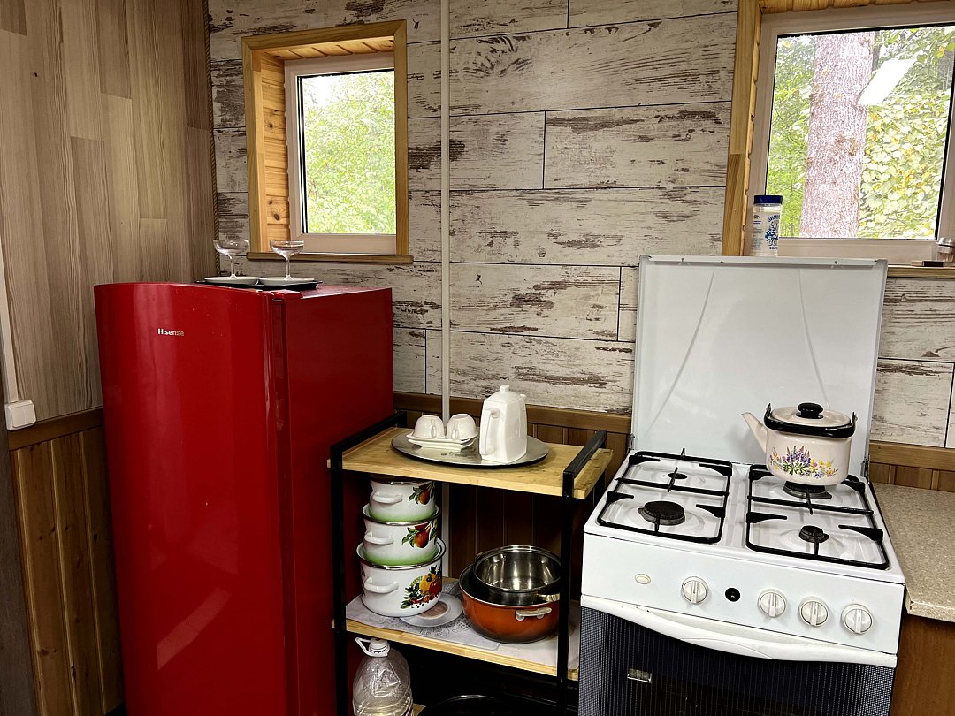 Обогревание дровяная печь (отоплением занимается администратор), есть холодная и горячая вода, телевизор в обеденной зоне (спутниковое), на кухне есть весь необходимый инвентарь: посуда, микроволновка, электр. чайник, газовая плита, холодильник.