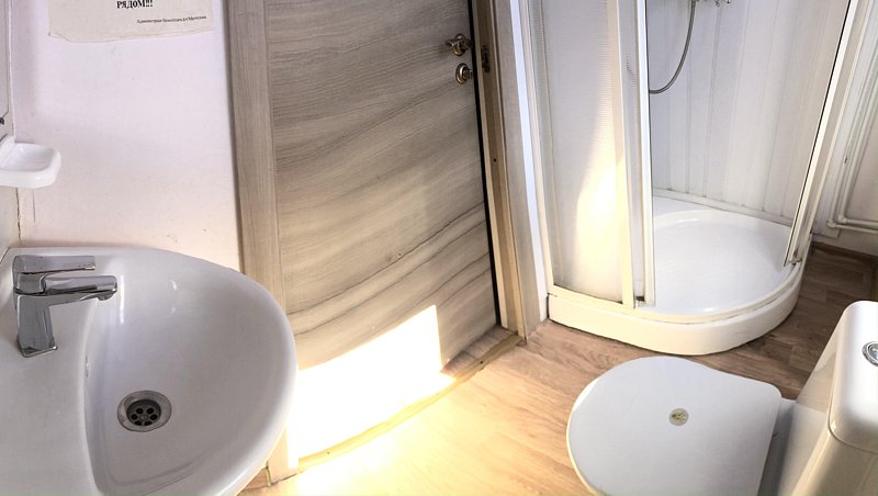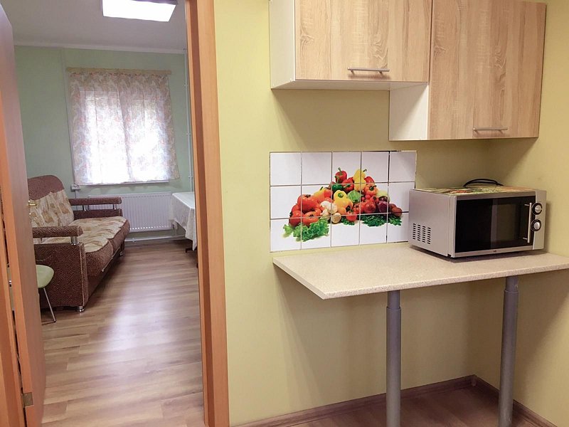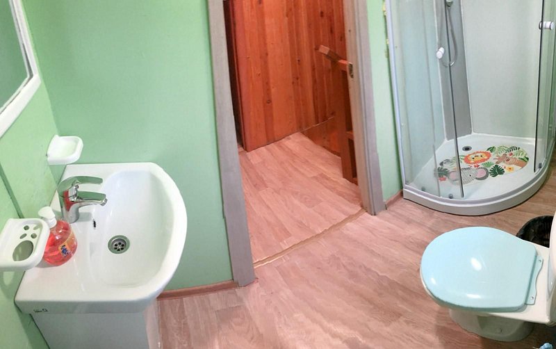 В вашем распоряжении спальня-гостиная совмещённая с кухней, санузел с душевой. Обогревание электрическое, есть холодная и горячая вода, телевизор в обеденной зоне (спутниковое), на кухне есть весь необходимый инвентарь: обеденный стол, посуда, микроволновка, электр. чайник, газовая плита, холодильник.
