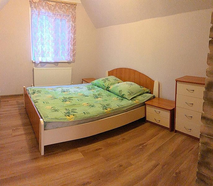 Уютный двухэтажный коттедж с беседкой и мангалом рассчитан на компанию 6 человек + 2 дополнительных места.