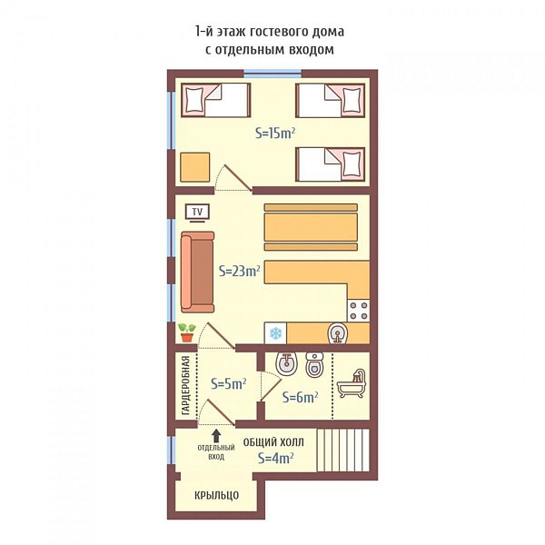 25 м2 · 2-х местный дом