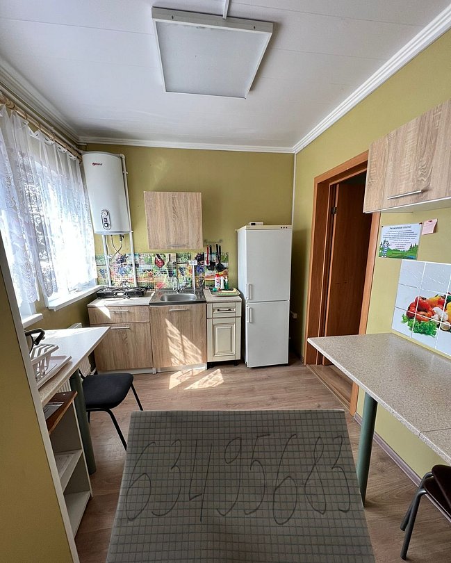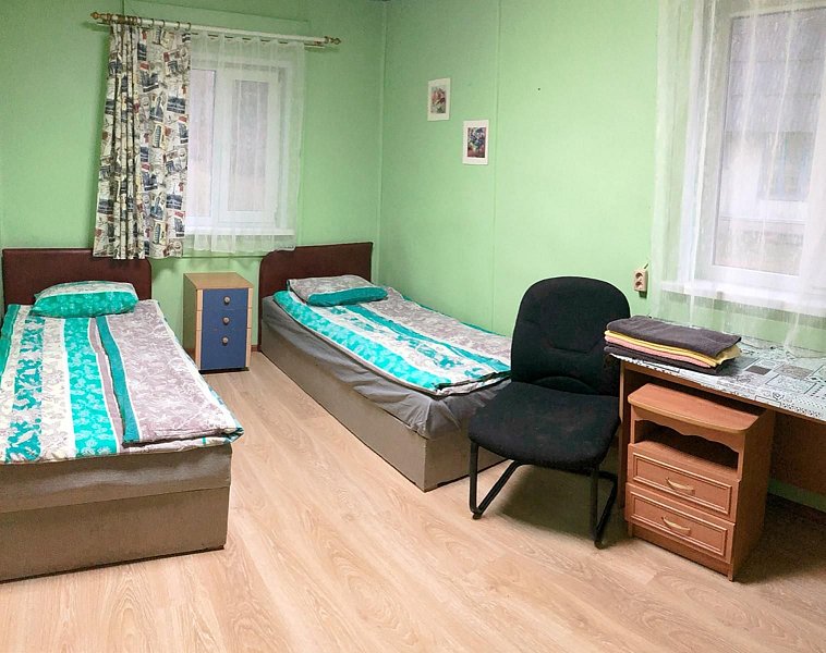 В доме три отдельные спальни, гостиная с диваном, санузел с душевой, небольшая кухня со всем необходимым инвентарём: посуда, микроволновка, электрический чайник, газовая плита, холодильник. Обогревание – котельная, есть холодная и горячая вода, телевизор в гостиной (спутниковое). Размещение: 1 спальня – двухспальная кровать, 2 и 3 спальня - по 2 односпальные кровати.