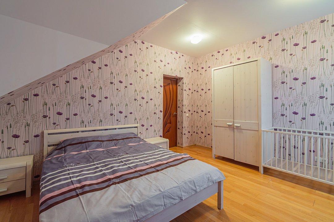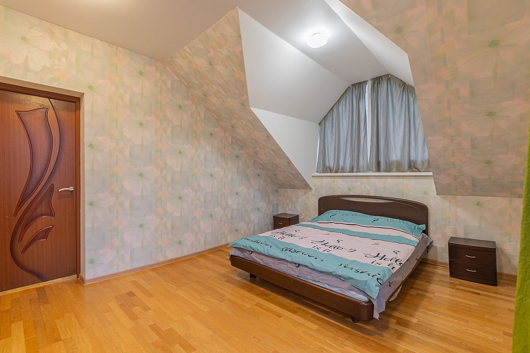 2ой этаж: спальня ( двуспальная кровать, прикроватные тумбочки, шкаф).