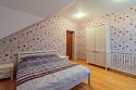 В коттедже могут комфортно разместиться 12 человек. 1ый этаж:прихожая, гостиная (раскладывающийся двухместный диван, большой обеденный стол, спутниковое тв, электрокамин) совмещенная с кухней, спальня ( двуспальная круглая кровать, шкаф).
