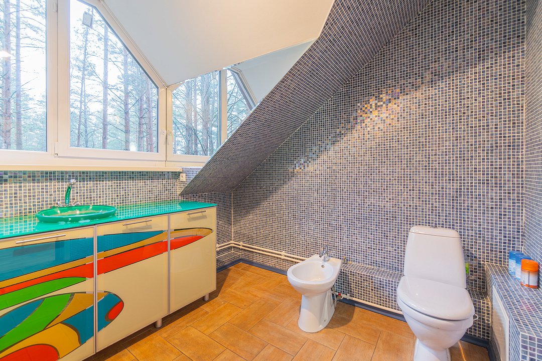 Есть вся необходимая кухонная посуда ( тарелки, ложки, вилки, стаканы, кастрюли, сковороды и т.д.) и бытовая техника ( чайник, микроволновая печь, газовая плита, духовой шкаф, хол-к, посудомоечная машина). Санузел с душем, сауна.