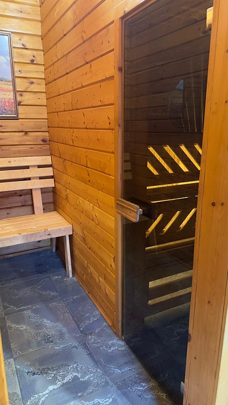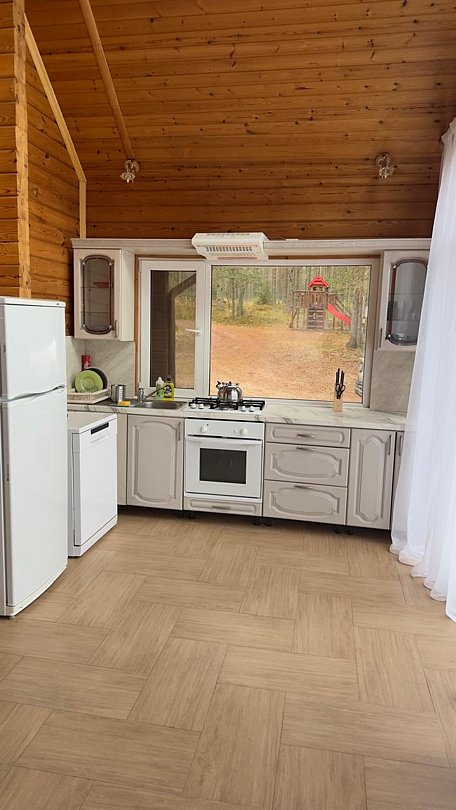 Есть вся необходимая кухонная посуда (тарелки, ложки, вилки, стаканы, кастрюли, сковороды и т.д.) и бытовая техника (чайник, микроволновая печь, газовая плита, духовой шкаф, хол-к). Санузел с душем, сауна.