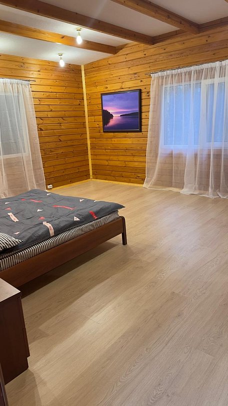Две односпальные кровати, две двуспальные кровати, две диван-кроватиБольшой коттедж из бревна