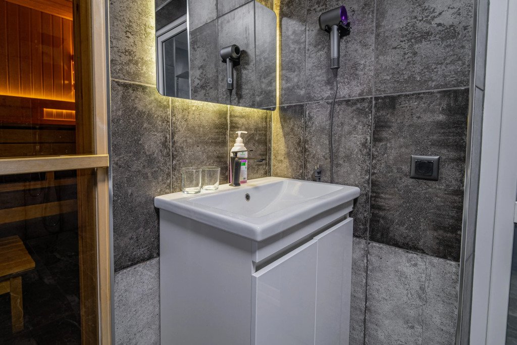 В распоряжении гостей мини-кухня, душевая, туалет, парилка на дровах. Есть умная колонка.