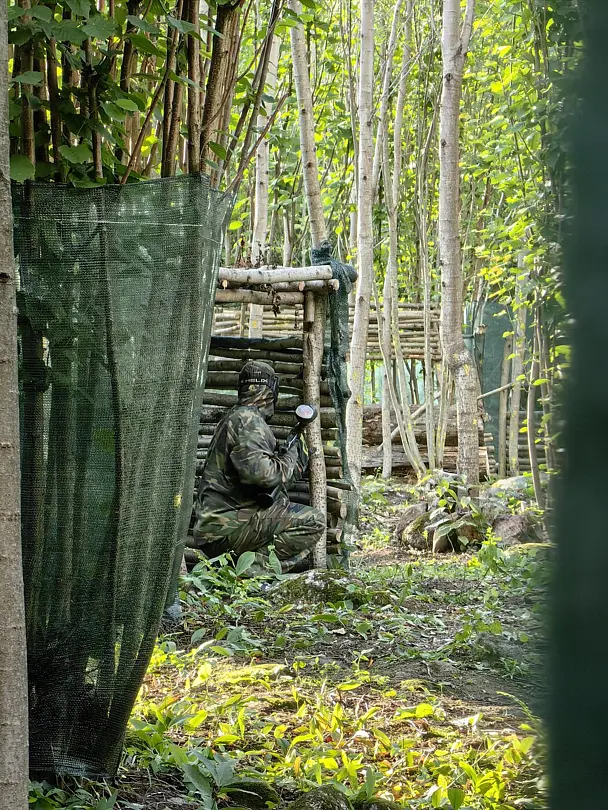 Наш пейнтбол проходит в лесу с естественным рельефом! Локация не просто лесная, это настоящая часть линии фронта во время Зимней войны 1939-40 гг, на которой находятся земляного артиллерийского ДОТа и новые препятствия, которые мы соорудили сами!