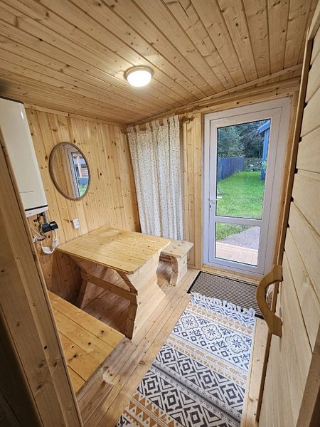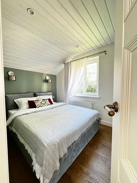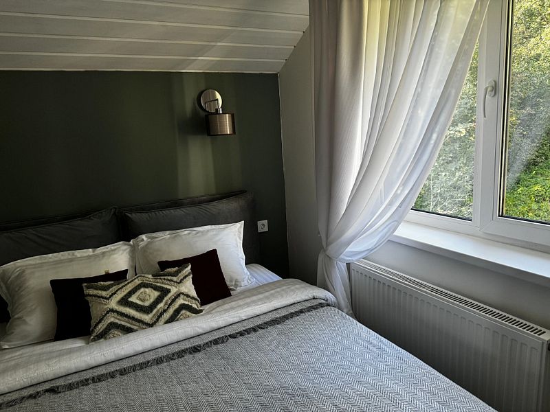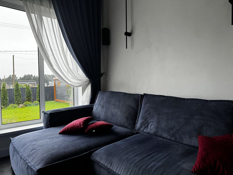 Загородный дом (120 к.м.)с уютной террасой и русской баней на дровах, расположенный в окружении чистых озер, экотроп и живописного соснового леса.