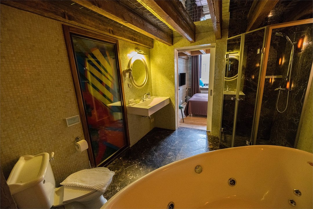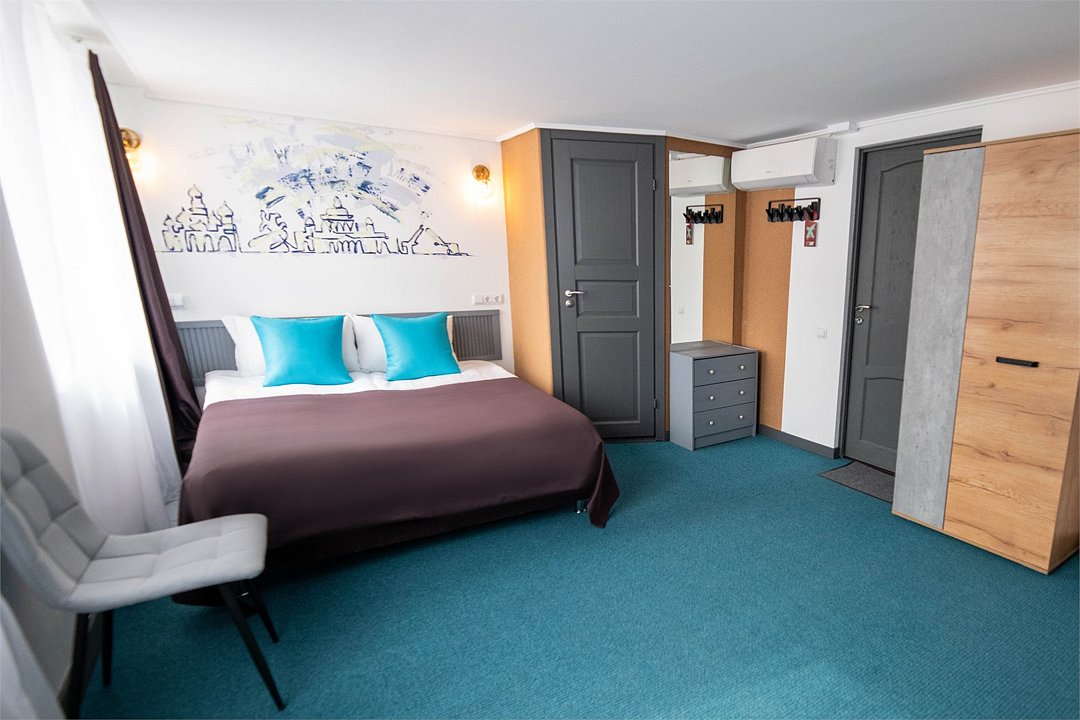 двуспальная кровать, с/у, гидромассажная ванна, ТВ, кондиционер, высота потолка 210 см!