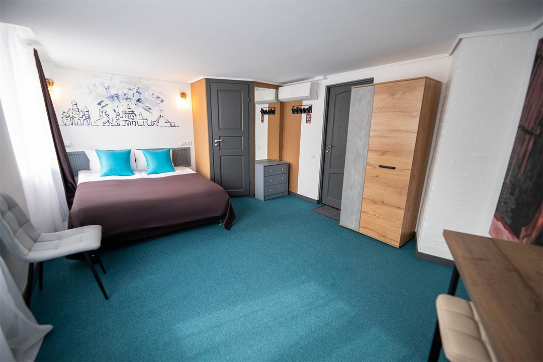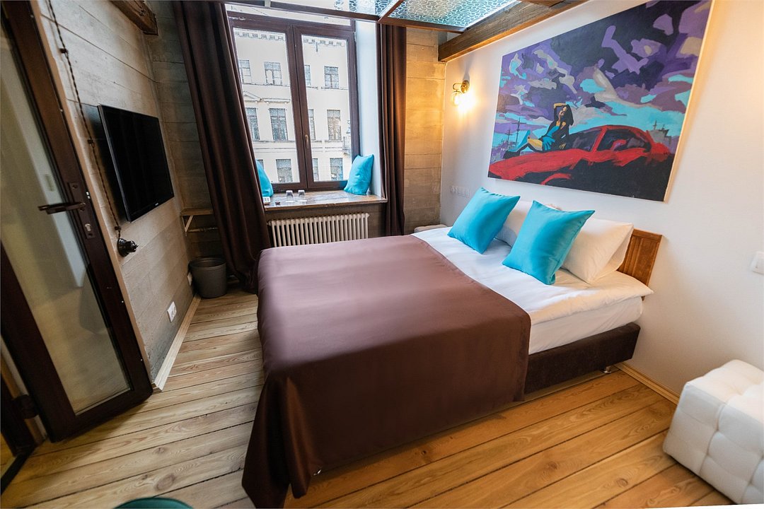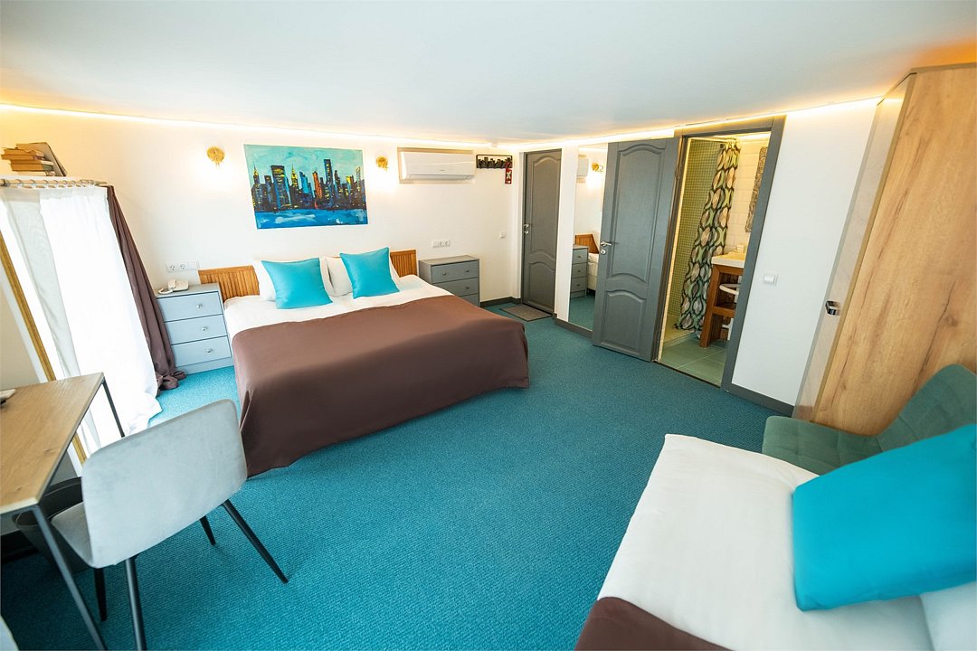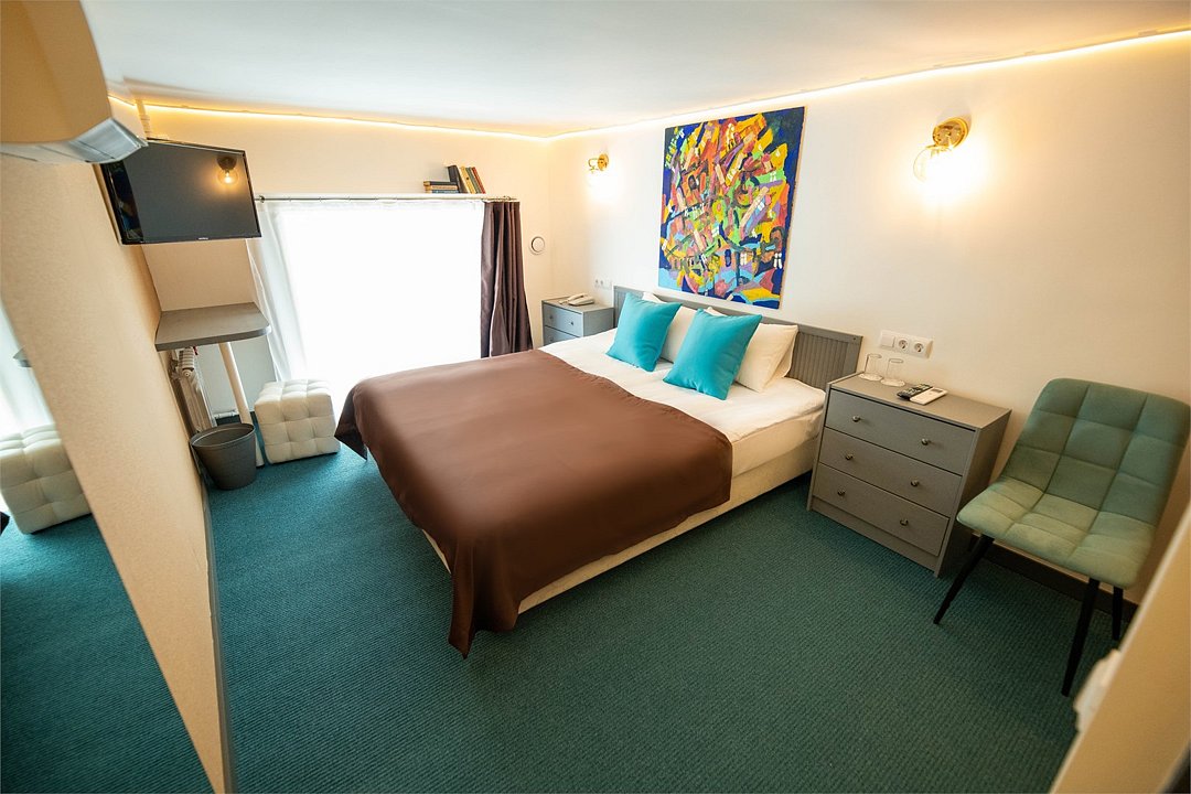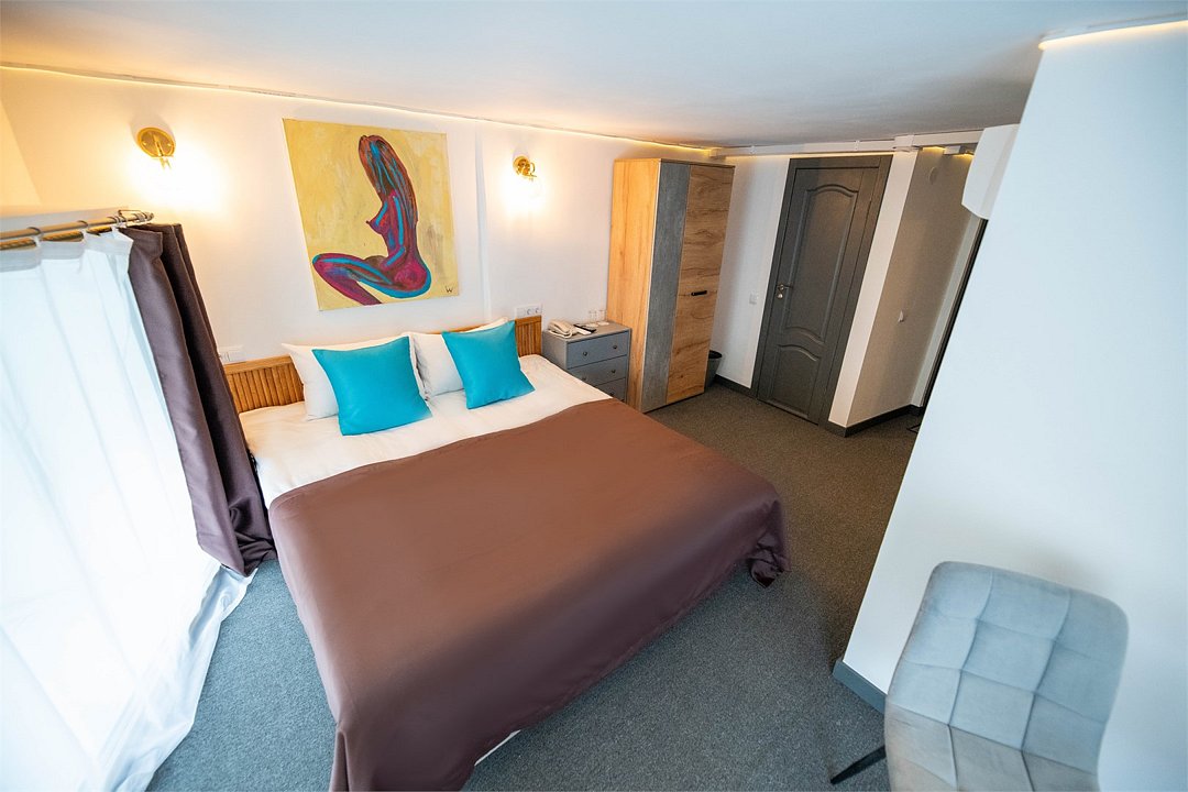двуспальная кровать, с/у, душ, ТВ, кондиционер, высота потолка 195-210 см!
