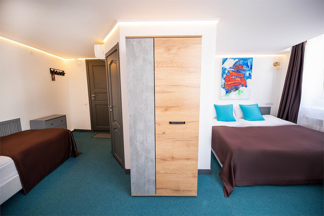 Путешествуете семьей или с друзьями - наши трехместные комнаты Ваш идеальный выбор. Комнаты оснащены двуспальной кроватью king size и односпальной кроватью, всеми необходимыми принадлежностями для комфортного отдыха и сна, с видом на исторический центр Санкт-Петербурга. Средняя площадь комнат: 21 кв.м. Всего комнат: 2 ВНИМАНИЕ: - высота потолков 195- 210 см - историческое здание БЕЗ лифтаУслуги и удобства