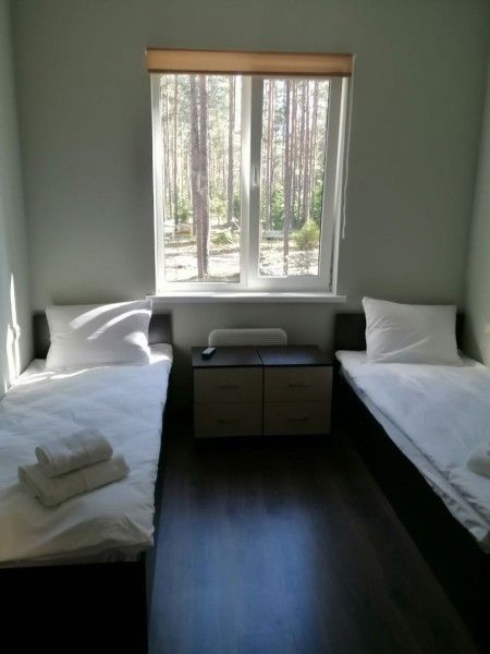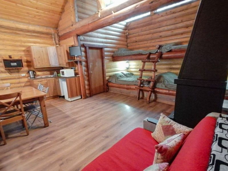 1 этаж: 2 спальни с двухспальными диванами, кухня-гостиная с камином - 2 сп. диван-кровать, санузел, терраса; кухня (электрический чайник, посуда на 6 персон+ шампура, кулер с питьевой водой, холодильник, микроволновая печь), гостиная (музыкальный центр, камин, ТВ, ДВД), санузел (душевая кабина, унитаз).
