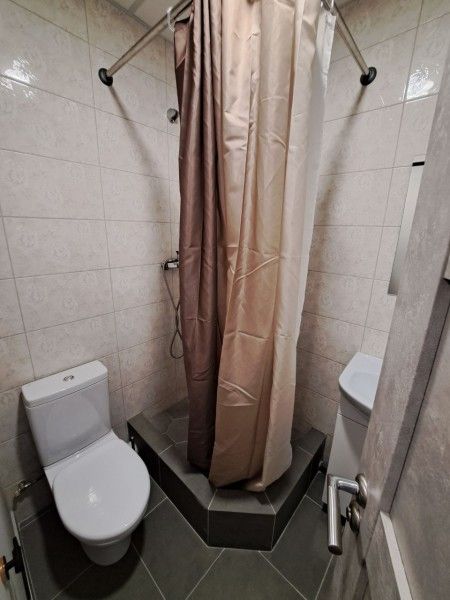 - Собственный санузел с плиточным душ-поддоном, туалетом, раковиной, жидким мылом и туалетными принадлежностями