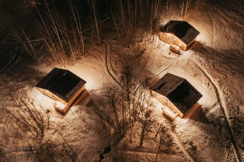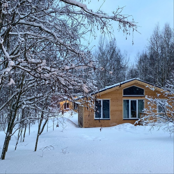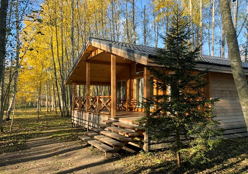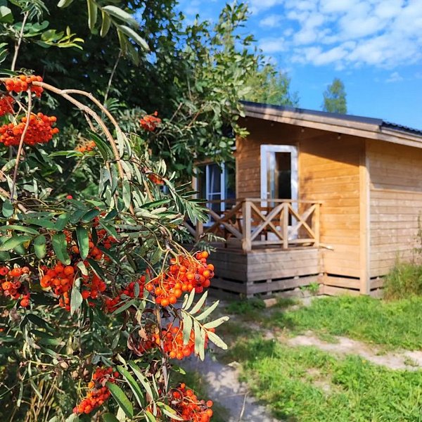 Рядом расположено озеро Гусиное, идеально подходящее для купания и рыбалки, а также сосновый лес, который окутывает атмосферой спокойствия. Интерьер домиков оформлен в стильном скандинавском дизайне.