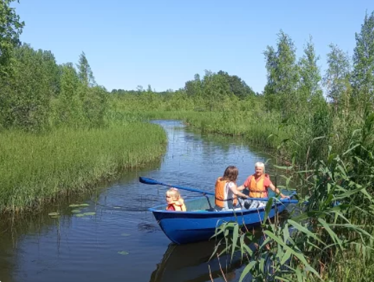 Можно взять лодку и поплавать по живописному озеру, любоваться природой или рыбачить.