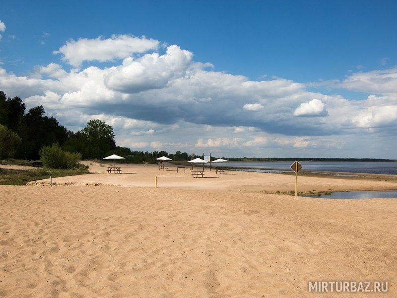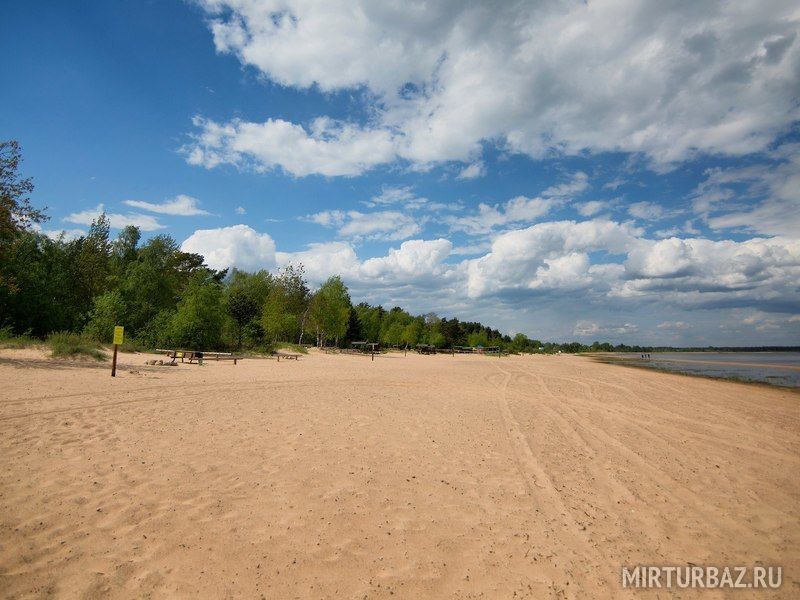 К Вашим услугам прекрасный чистый пляж, оборудованный всем необходимым, на берегу Ладожского озера.