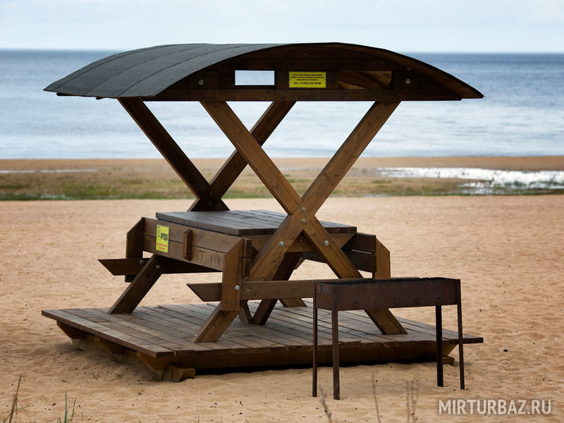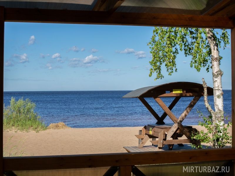 Беседка с крышей на берегу Ладожского озера подойдет для размещения компании до 6 человек. Удобное расположение объекта поможет вам насладиться шикарным видом. Рядом с беседкой расположен мангал на песке.