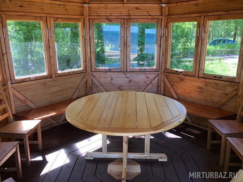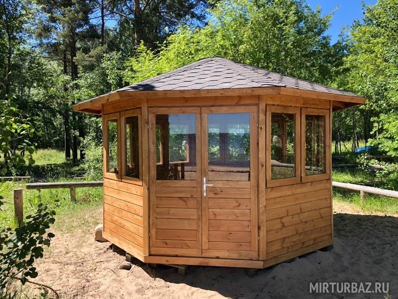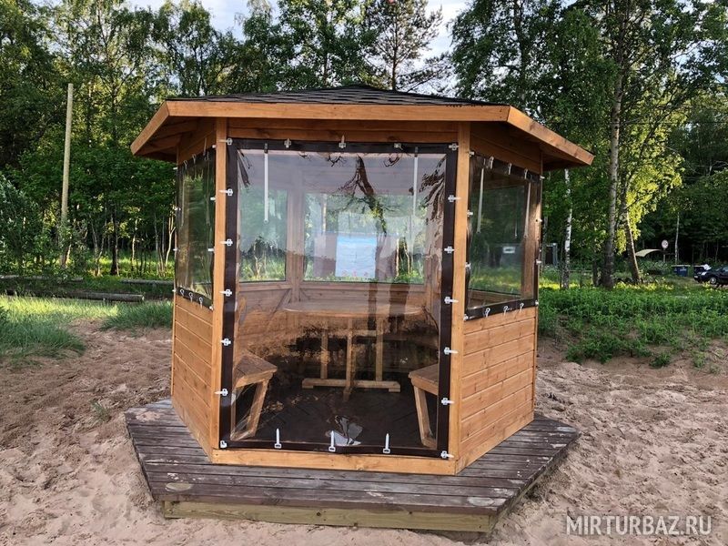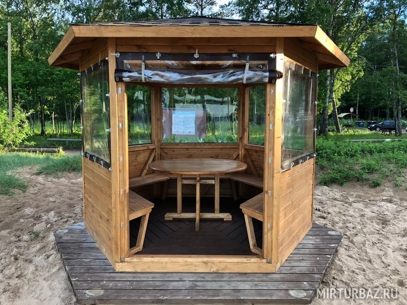 Беседка шестигранная расположена на берегу, вмещает до 8 человек и укроет от дождя и ветра при непогоде.