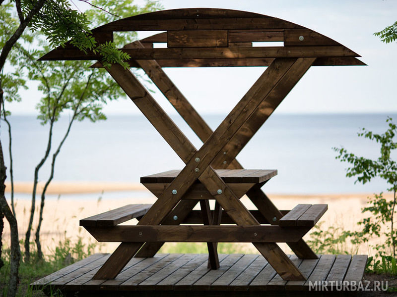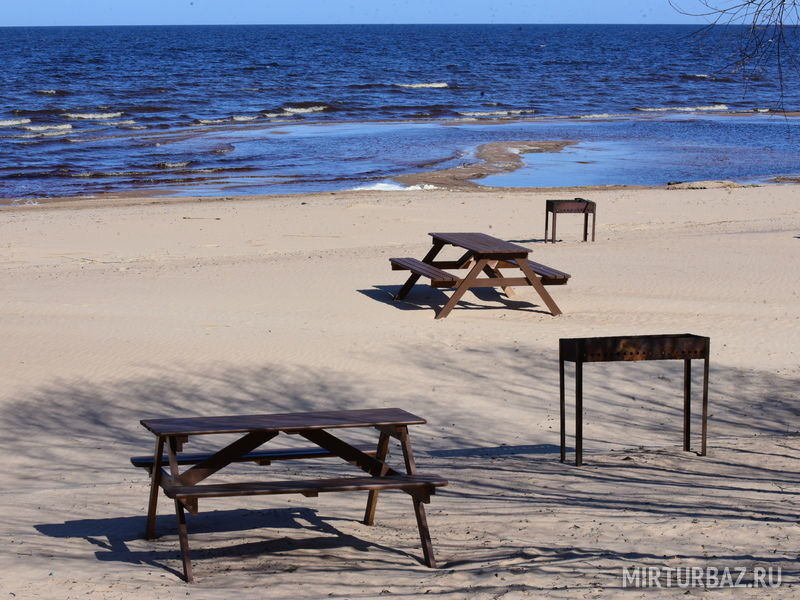 Читать полностьюСтол на 4 посадочных места расположен на пляже Ладожского озера.