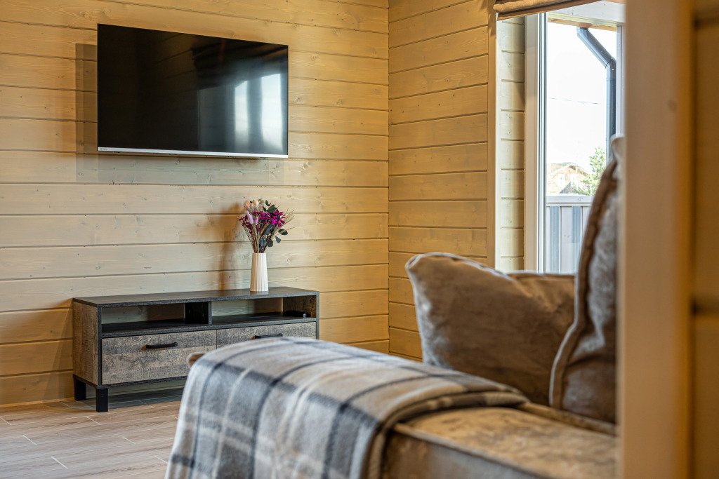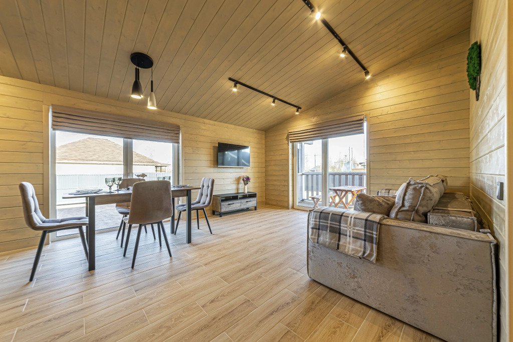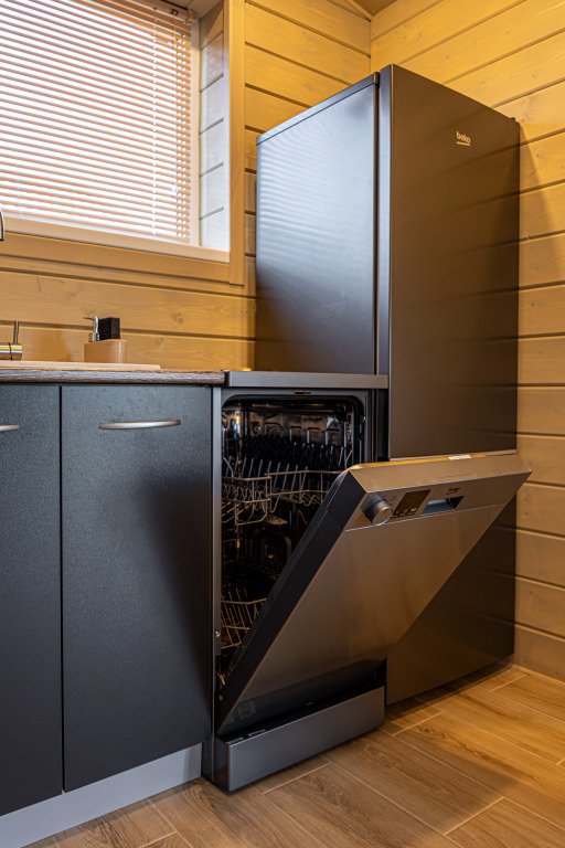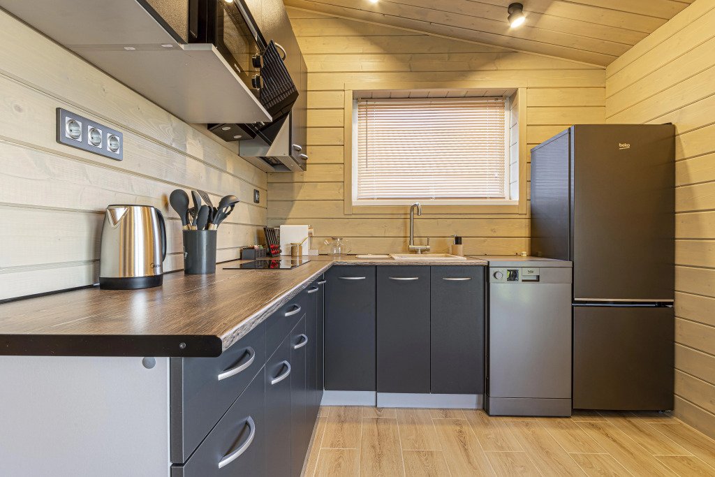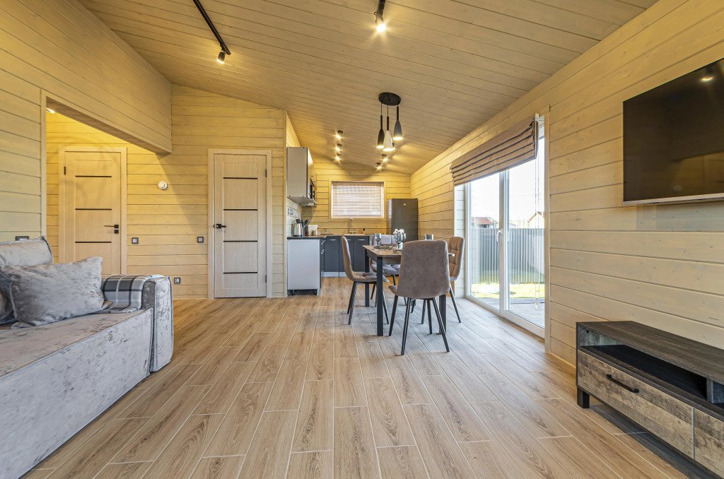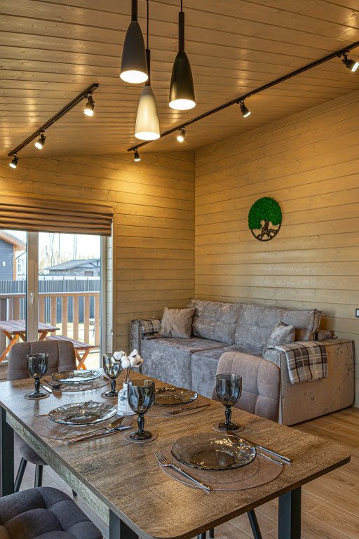Дом рассчитан на размещение до четырёх гостей и ребёнка. В наличии две спальни, по запросу предоставляется детская кроватка-манеж и стульчик для кормления. Оснащение включает тёплый пол по всему дому, кухню с чайником, посудомоечной машиной, кофемашиной, холодильником и посудой. В доме установлен Smart-телевизор, Wi‑Fi, предоставляются постельное бельё, полотенца, тапочки, гель для душа, шампунь и фен.