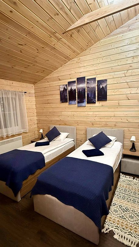 - две отдельные спальни (первая с двумя односпальными кроватями, вторая с односпальной и двуспальной кроватями);