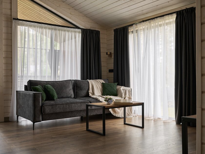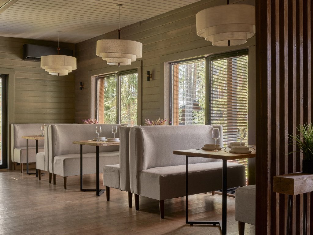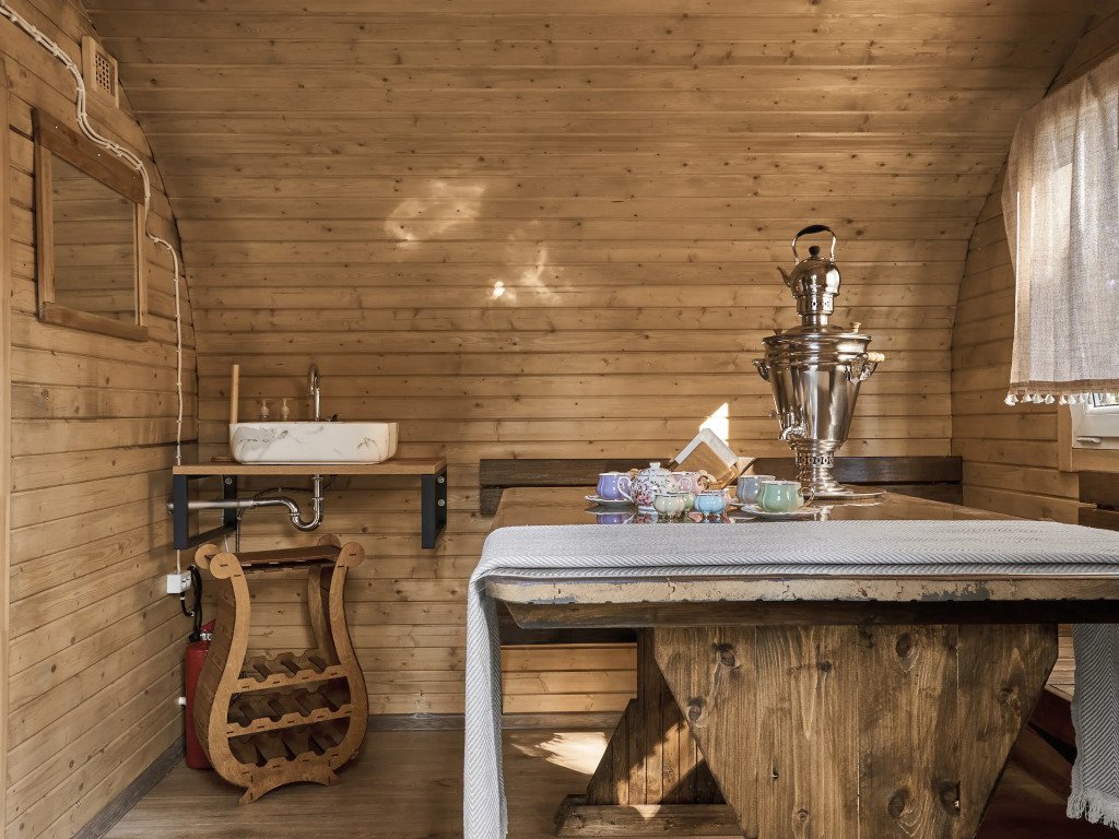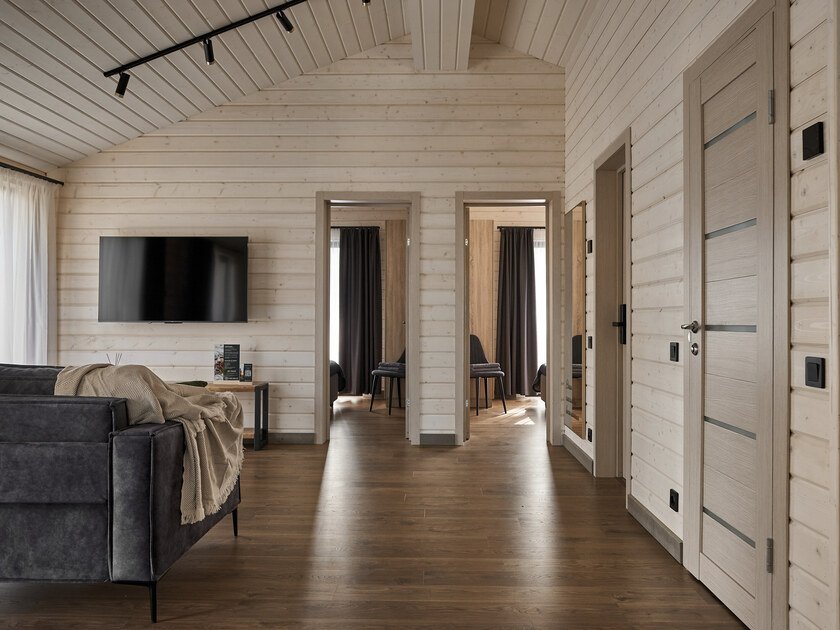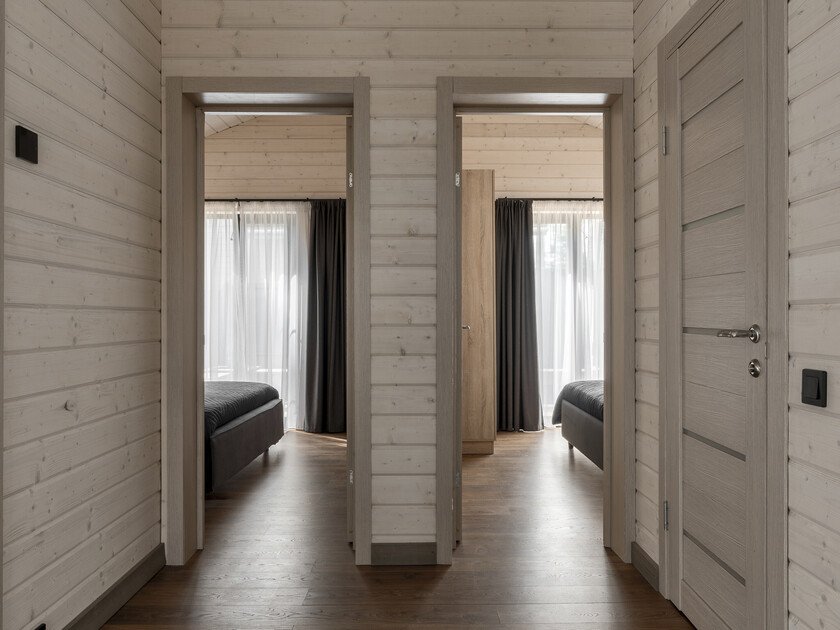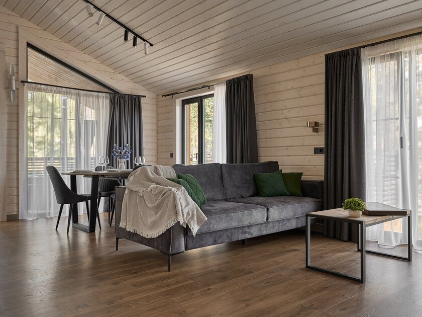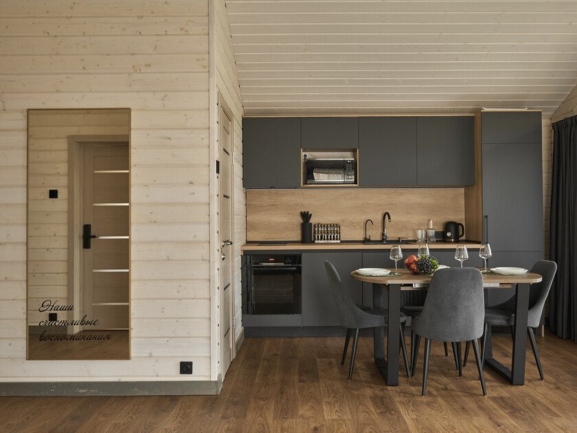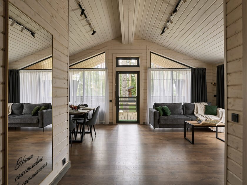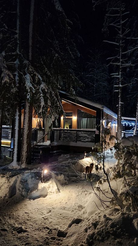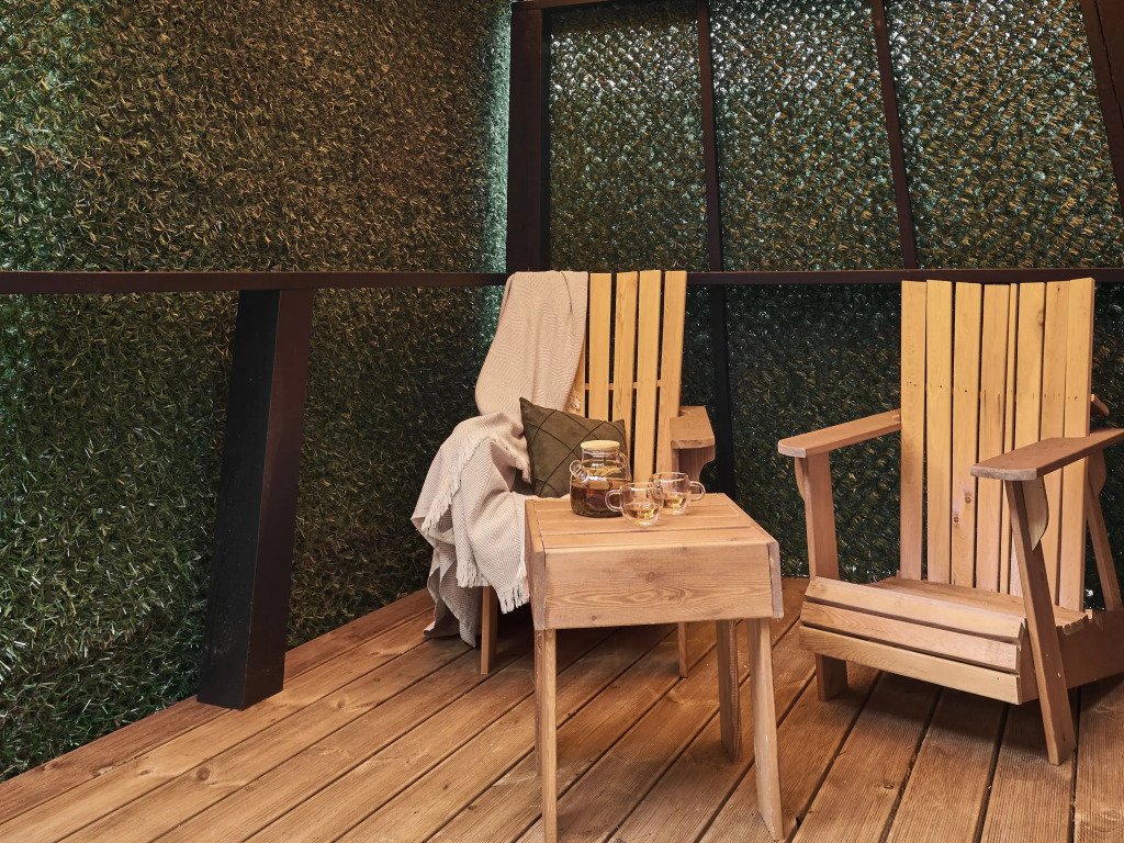 Во всех домах есть собственная терраса с купелью, панорамное остекление и потрясающие виды на хвойный лес.
