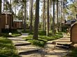 Территория включать пять домов, органично вписанных в природный ландшафт среди вековых елей, и построенных на удалении друг от друга.