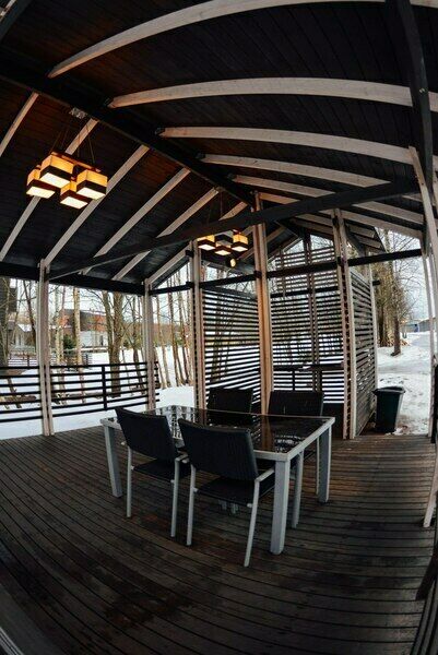 В комплексе отдыха преобладает скандинавский стиль: естественность, минимализм, натуральность и простота, использование природных материалов, уют и комфорт.