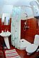 Ванная комната в больших домах: душ, унитаз, раковина, зеркало, холодная и горячая вода, косметика, полотенца, фен.