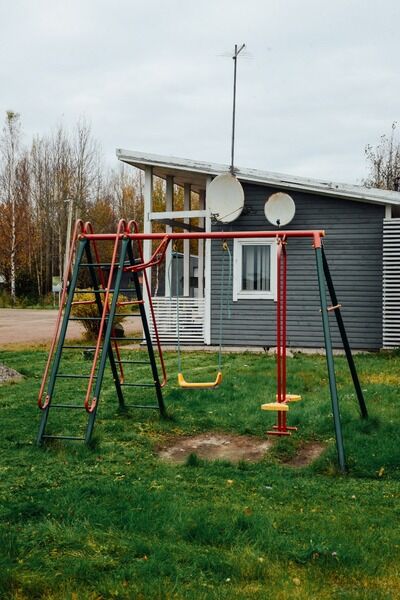 Небольшой, но уютный домик в скандинавском стиле для двоих: две отдельностоящие одноместные кровати, телевизор, печка-буржуйка, электрическое отопление, журнальный столик, комод, микроволновка, холодильник, чайник, ванная комната. Ванная комната в двухместном домике: душ, унитаз, раковина, зеркало, холодная и горячая вода, косметика, полотенца, фен. Рядом с домиком оборудована собственная зона для барбекю со столом, стульями и мангалом. Шампура и решетки для жарки мяса предоставляются бесплатно. Уголь, жидкость для розжига и спички гости везут свои.