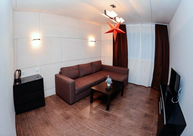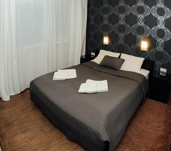 Холл с раскладным двуспальным диваном, спальня с двумя отдельностоящими одноместными кроватями, телевизор, электрическое отопление, журнальный столик, комод, микроволновка, холодильник, чайник, ванная комната.