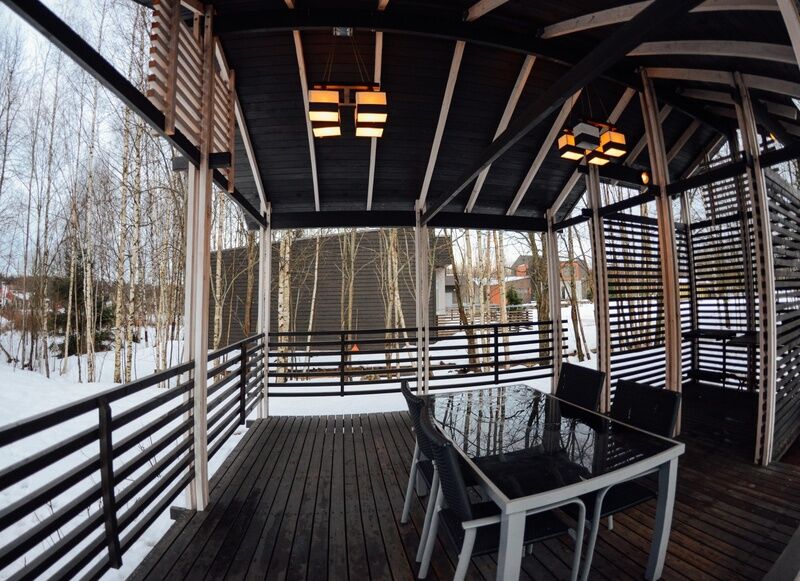 Так же на территории «Лаволы» есть две беседки со столом, стульями и мангалом. Внутри есть светильники и розетки – например, чтобы гости смогли подключить музыкальную аппаратуру.