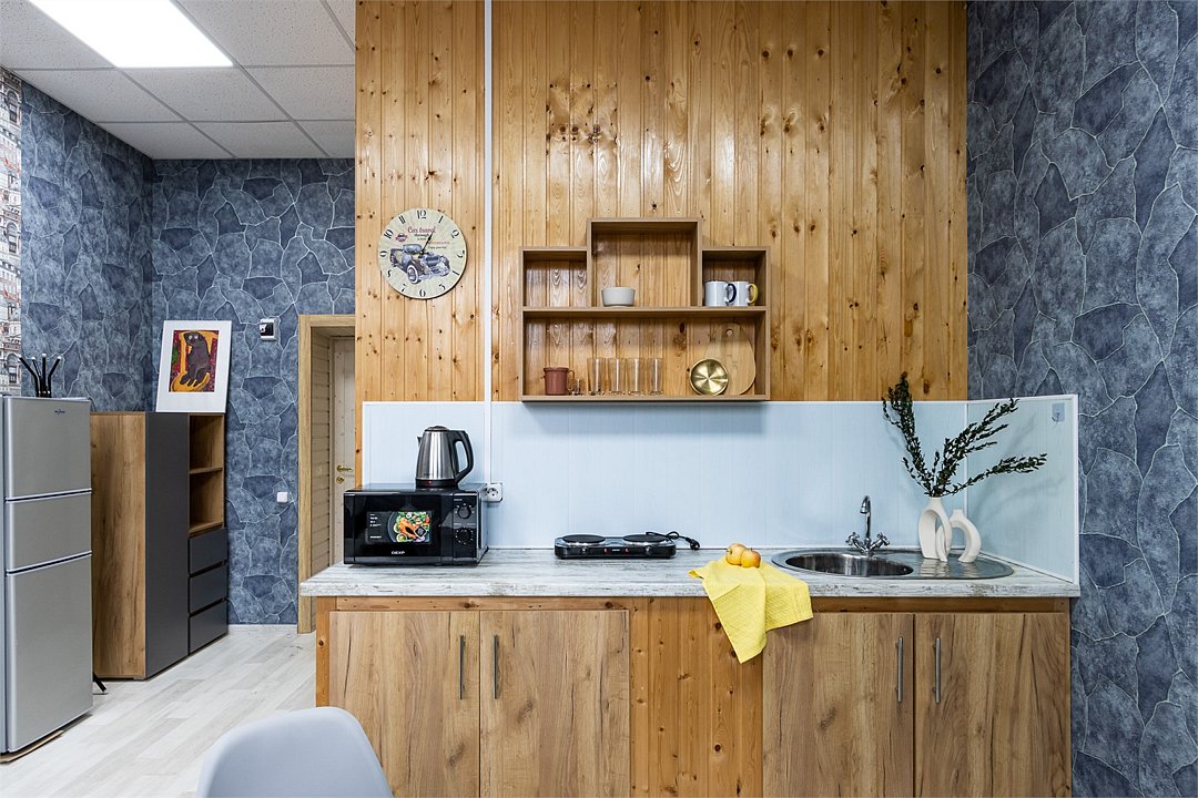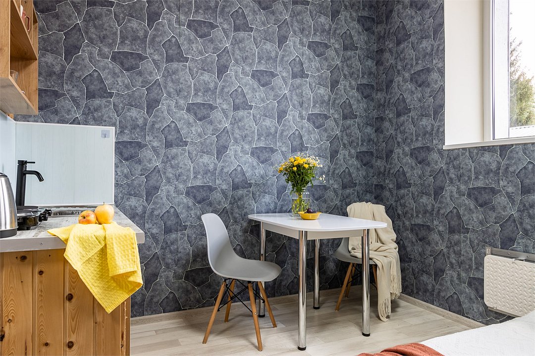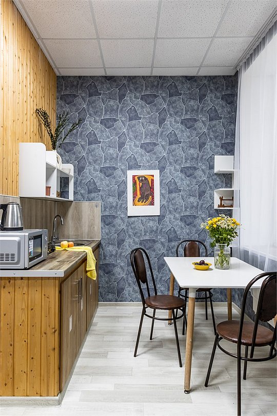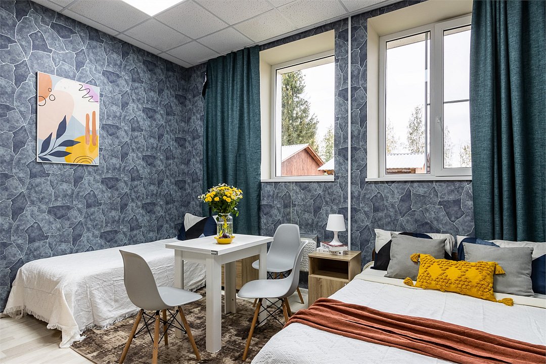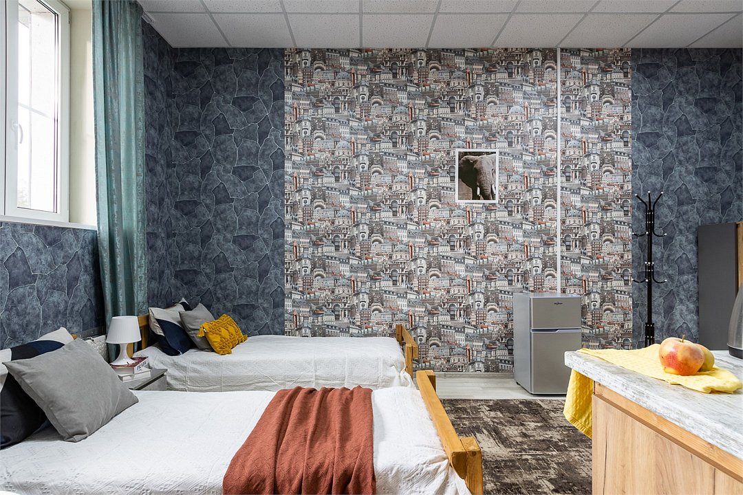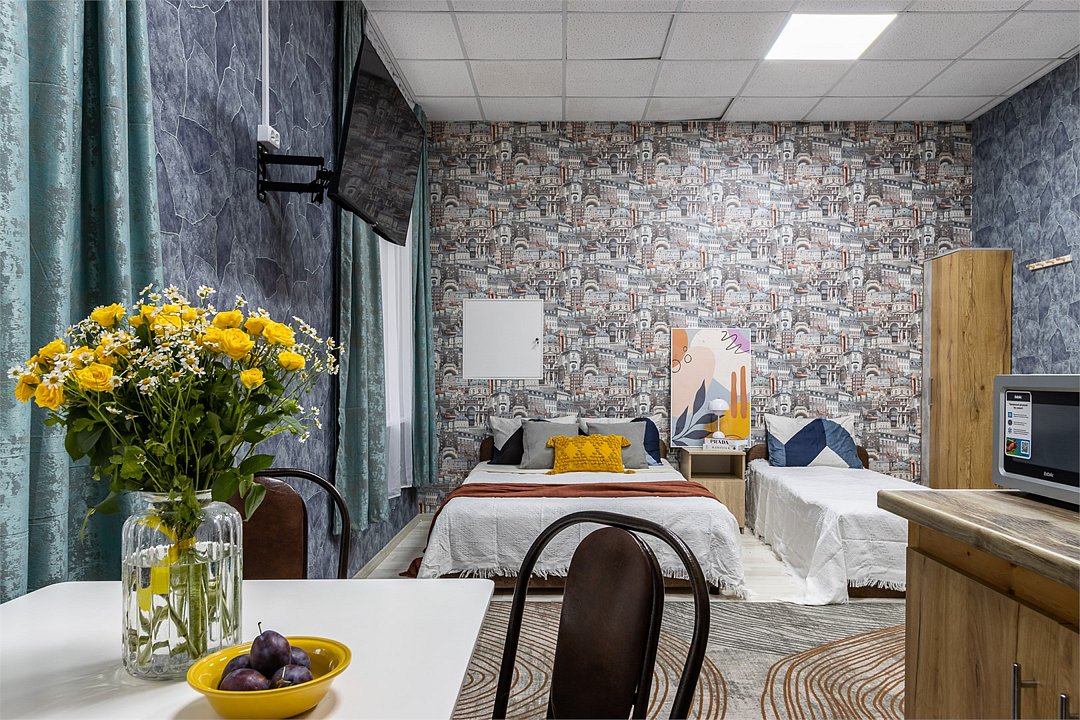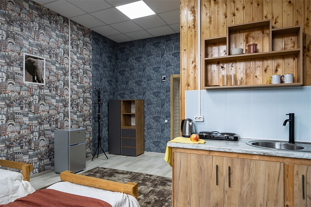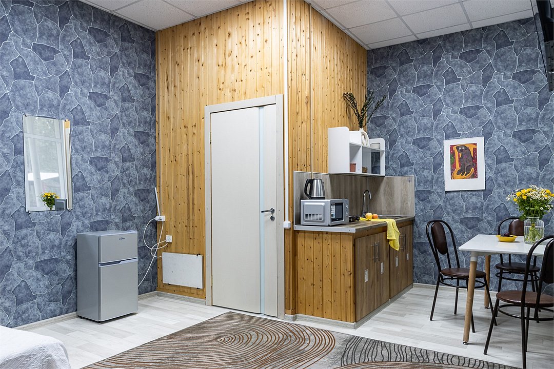 Wi-Fi, плита для приготовления пищи, микроволновая печь, двуспальная кровать, тумбы, стулья, шкаф для одежды, вешалки, зеркало, набор посуды, чайник, отопление, общая ванная комната, кухонная посуда, стаканы, кухонная утварь, столовые приборы, стол, санузел на этаже, мини-холодильник, мини-кухня, кухонный уголок, москитная сетка, номер для некурящих, уборка номера, вешалки-плечики, затемняющая штора, можно с питомцамиВ гостиничном номере