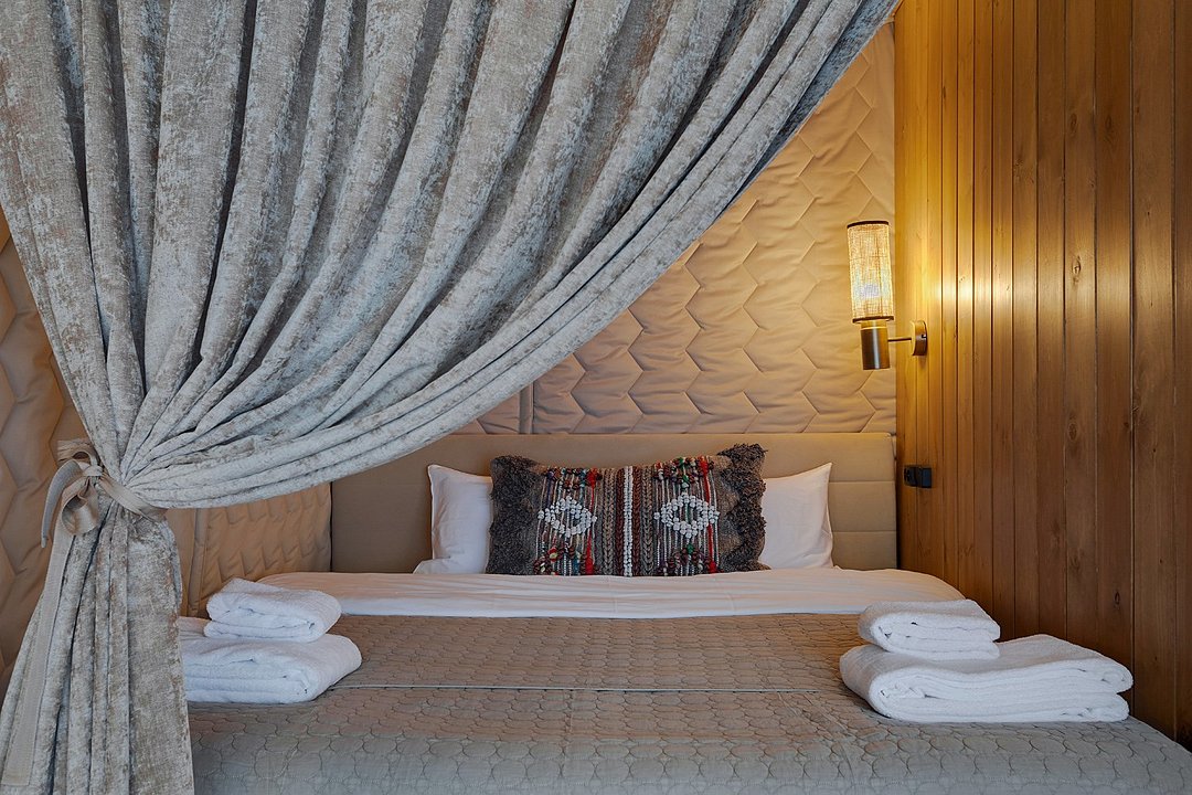 Здесь вас ждут уютные лоджи, романтические шатры и стильный гестхаус. Каждый из них предлагает уникальные условия для отдыха — будь то у воды или среди деревьев. Не упустите возможность расслабиться в фито-купели с подогревом, наслаждаясь великолепными видами.
