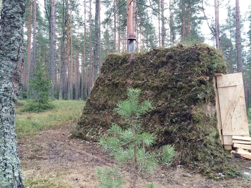 Эко-шалаш "У Феди" — это настоящее бунгало, в котором располагается три односпальные кровати, застеленные свежим бельем, для комфортного сна. Шалаш очень теплый - снаружи покрыт мхом и дерном, а внутри отапливается настоящей дровяной печью! Ему нипочем любой мороз. В шалаше Вы найдете настоящие шкуры, свечи, фонарь для освещения в темное время суток. Комфортный биотуалет располагается неподалеку.