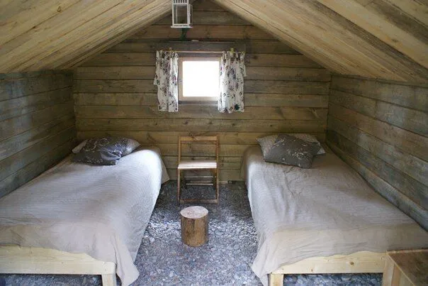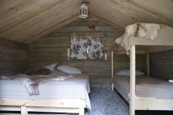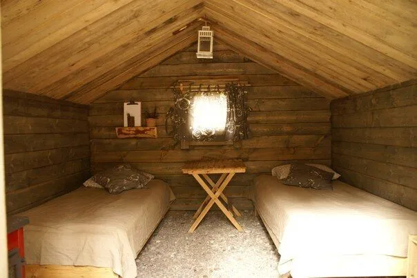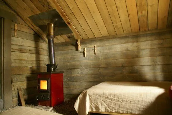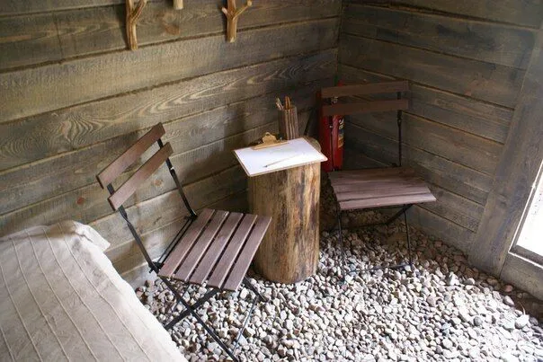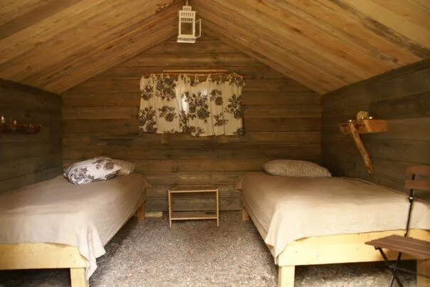 Настоящий охотничий шалаш — небольшое бунгало для двоих. Две кровати с настоящими шкурами на них, теплая дровяная печь, свечи и фонари — в шалаше есть все для комфортного сна. Вы можете привезти свои спальные мешки, или взять их в аренду. Неподалеку от шалаша располагается комфортный биотуалет.
