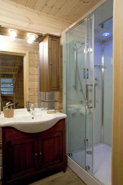 Просторная парная на дровах вмещает до 6 человек. Оригинальной деталью загородного комплекса выступает гидромассажная СПА-джакузи, оборудованная фонтаном и динамичной подсветкой, которая расположена на свежем воздухе – на крытой террасе.