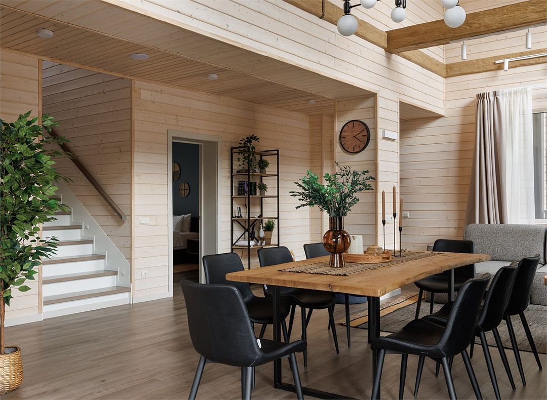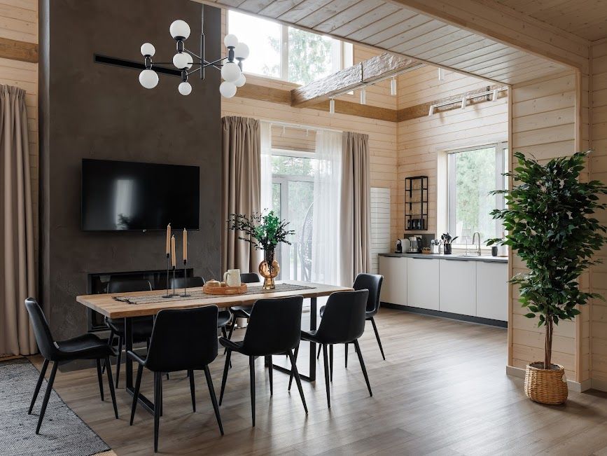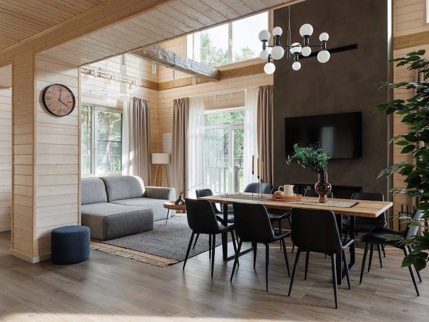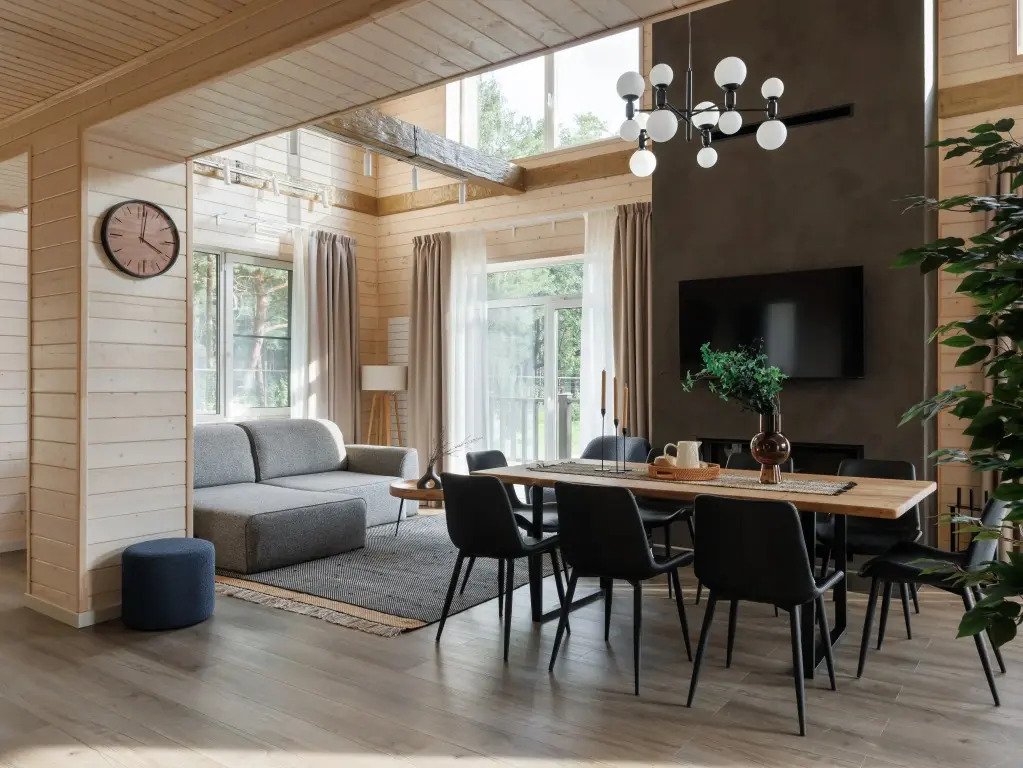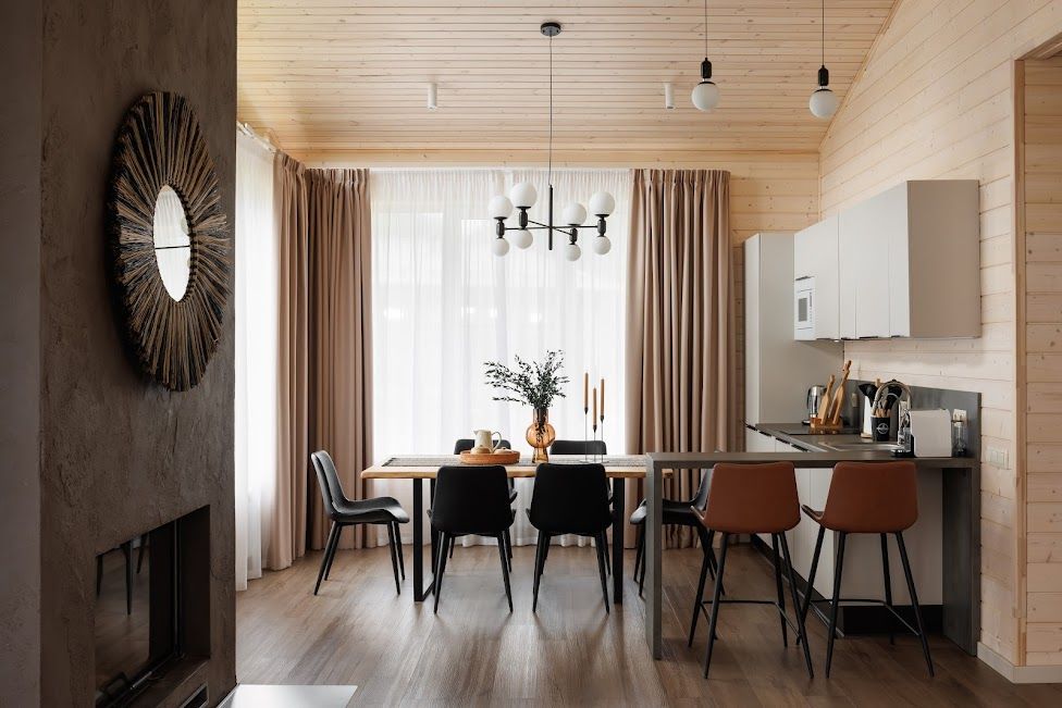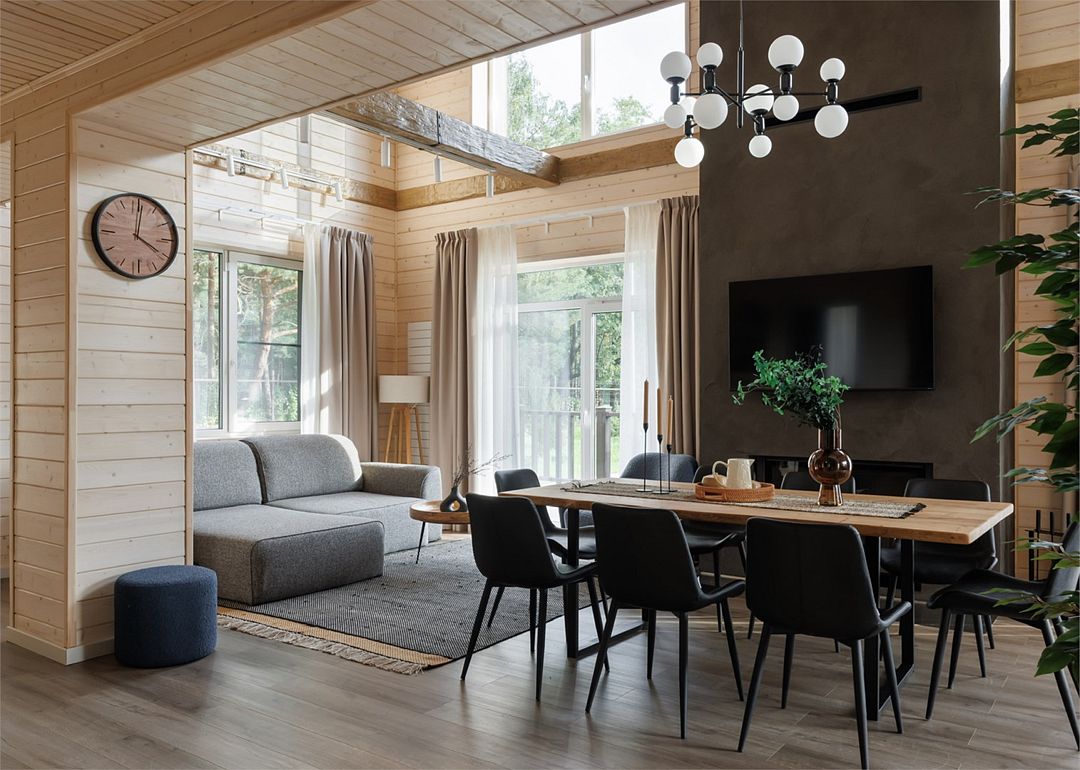 Продуманный до мелочей интерьер в скандинавском стиле создает атмосферу комфорта и умиротворения. Просторная гостиная с панорамными окнами послужит прекрасной площадкой для праздничных мероприятий или уютных вечеров в кругу близких.