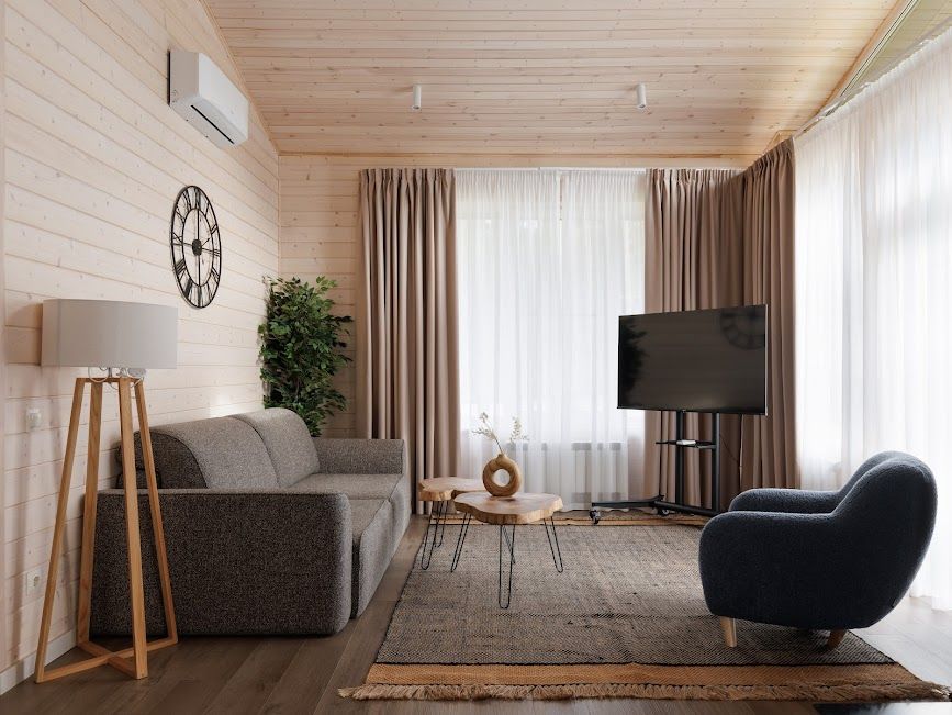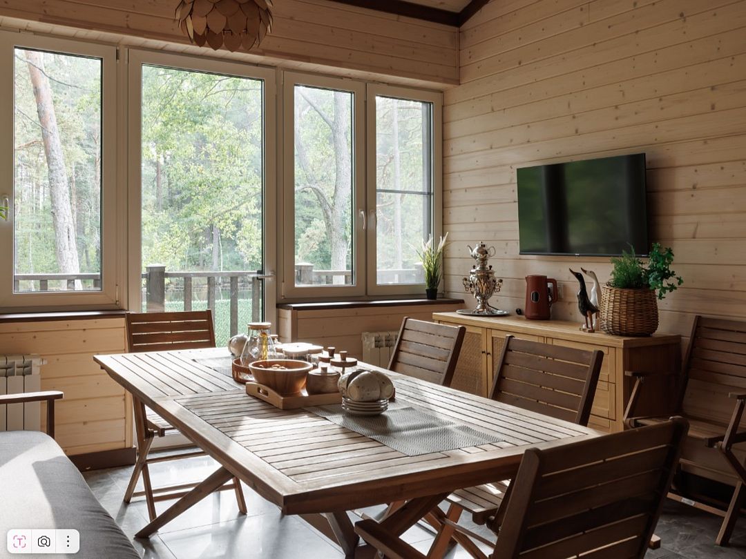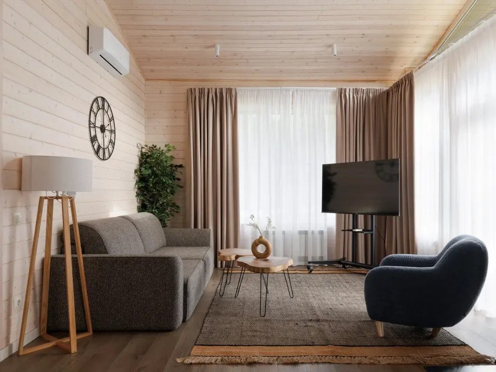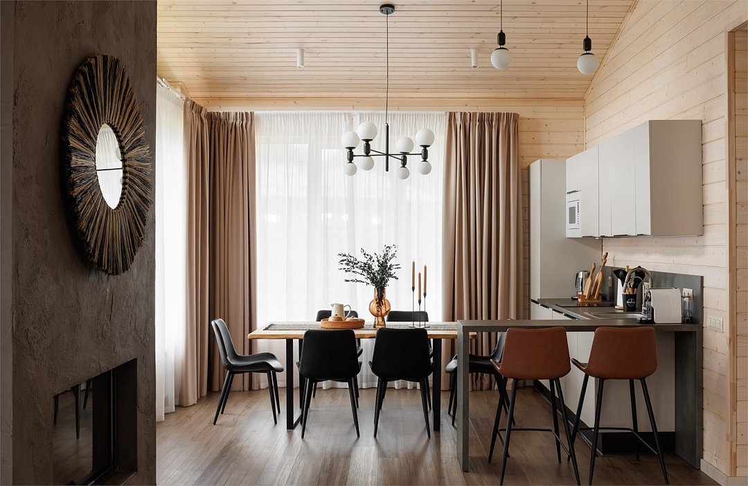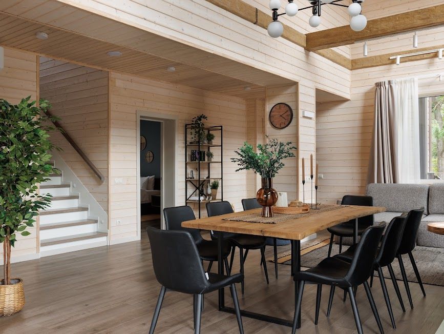 Продуманный до мелочей интерьер в скандинавском стиле создает атмосферу комфорта и умиротворения. Просторная гостиная с панорамными окнами послужит прекрасной площадкой для праздничных мероприятий или уютных вечеров в кругу близких.