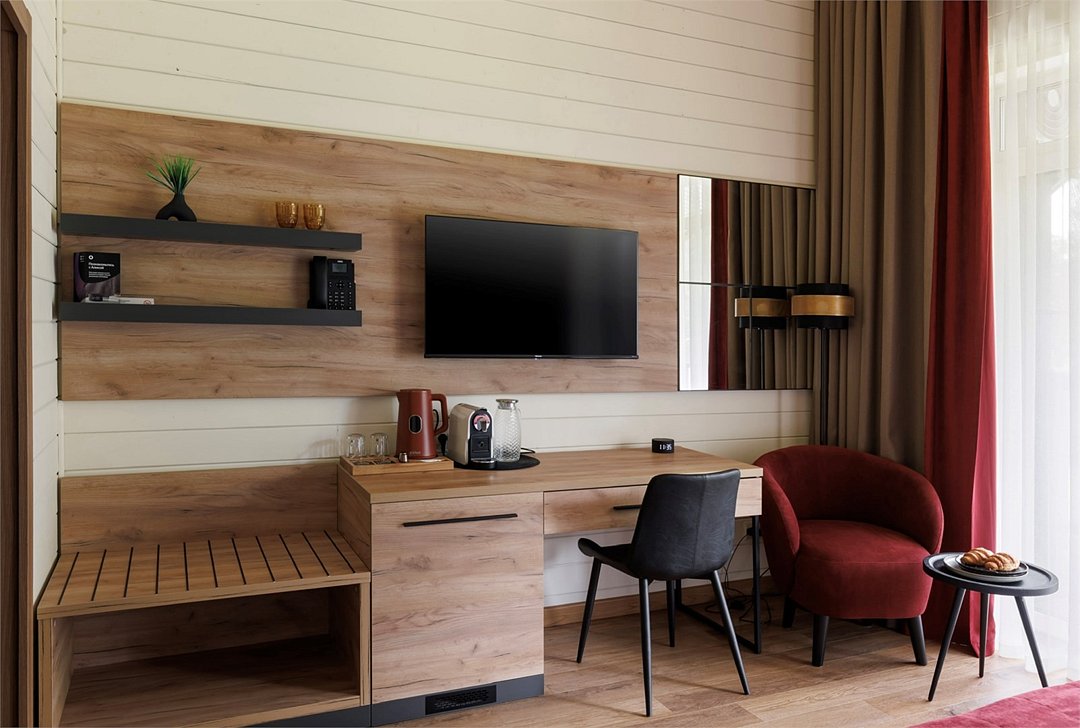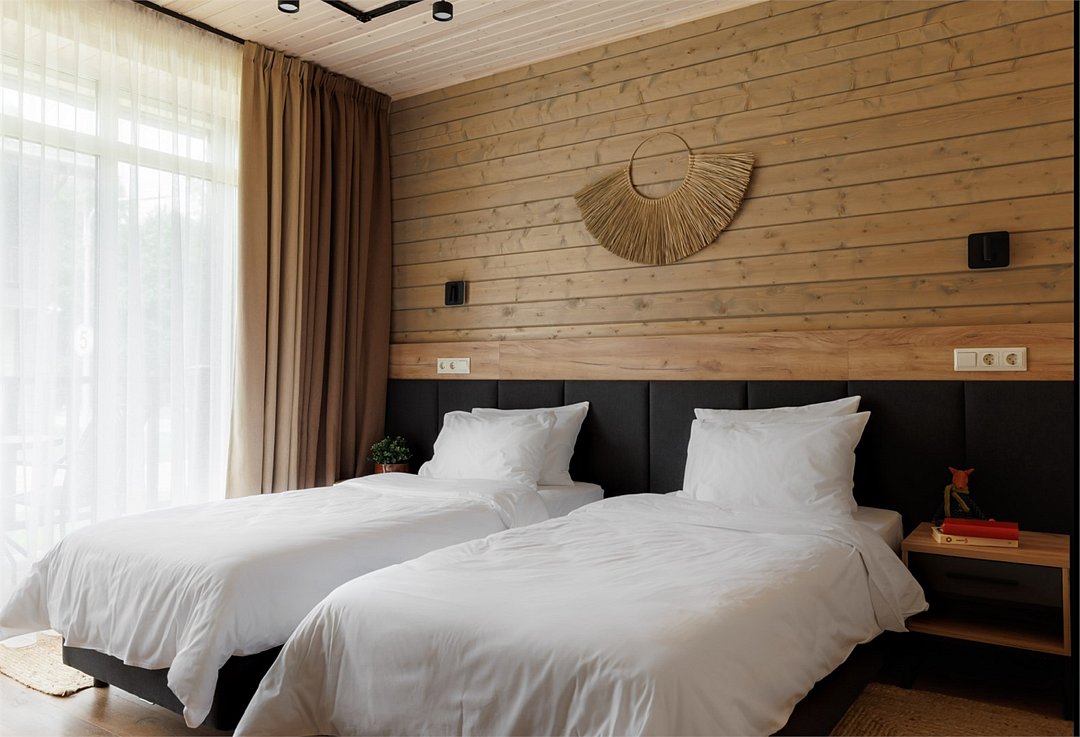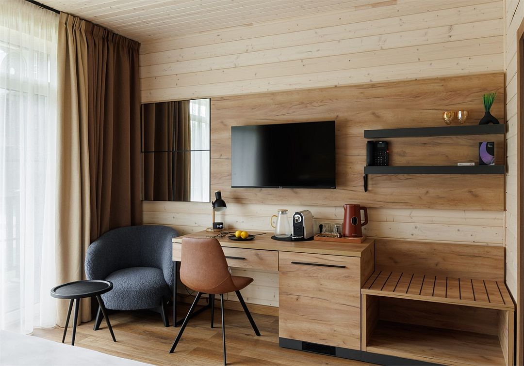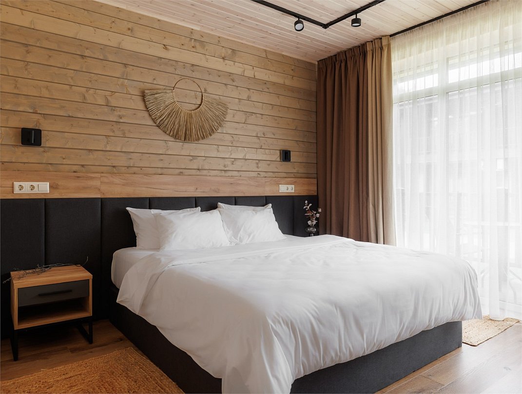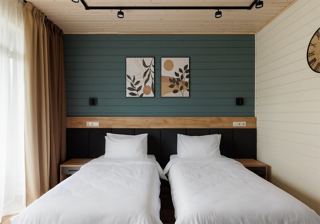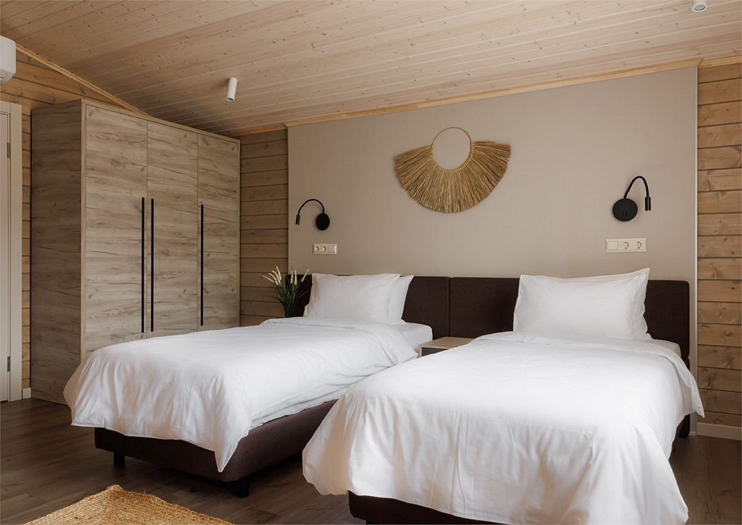 Интерьер номеров выполнен в изысканном скандинавском стиле, который создает атмосферу уюта и умиротворения. Продуманная до мелочей обстановка поможет гостям ощутить полное расслабление и комфорт во время отдыха. Стоит отметить, что номер для некурящих гостей.