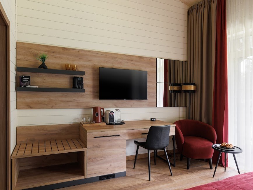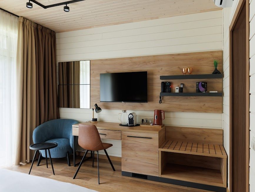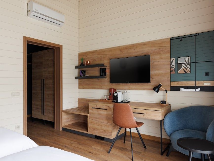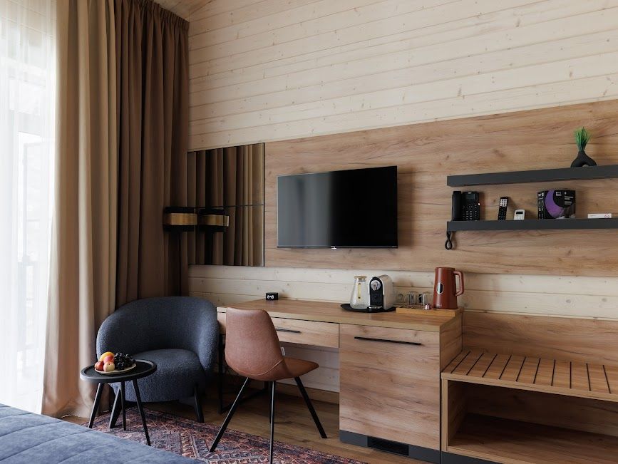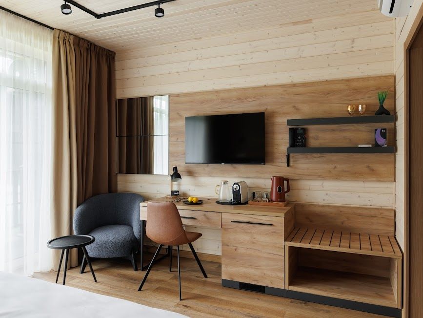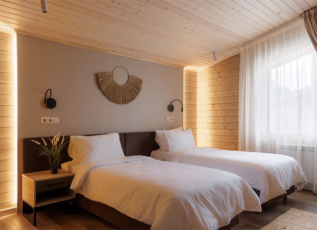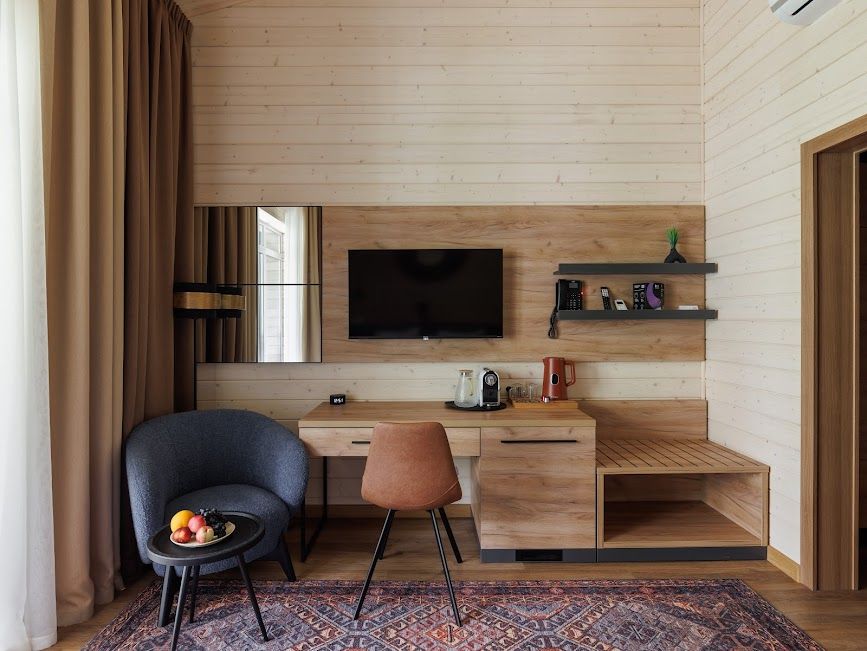 Интерьер номеров выполнен в изысканном скандинавском стиле, который создает атмосферу уюта и умиротворения. Продуманная до мелочей обстановка поможет гостям ощутить полное расслабление и комфорт во время отдыха. Стоит отметить, что номер для некурящих гостей.