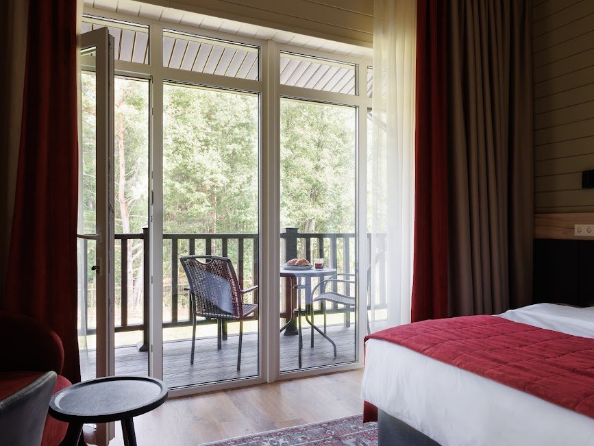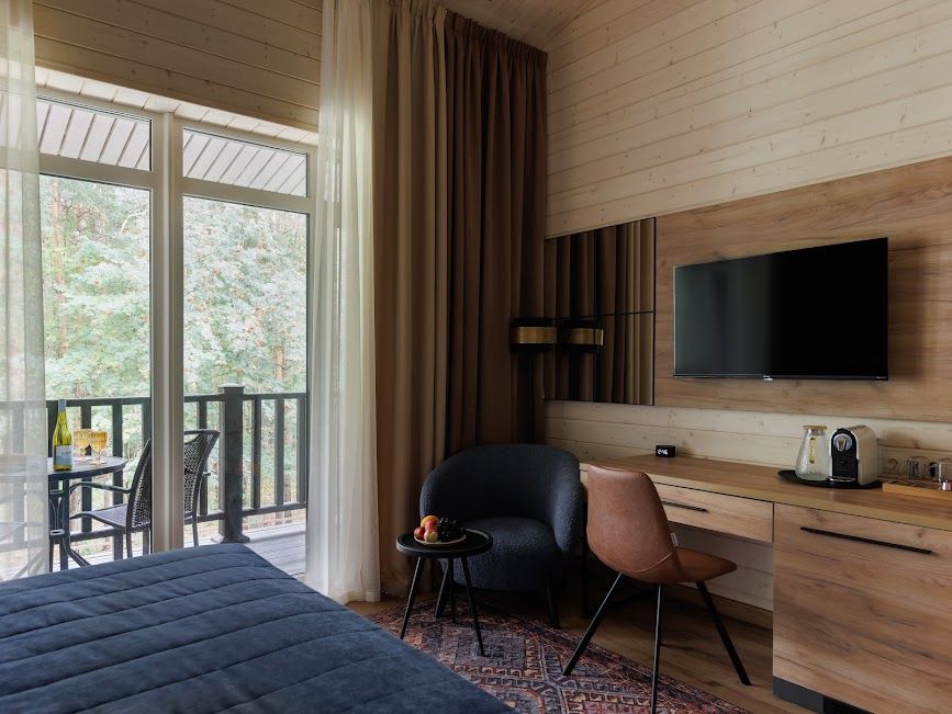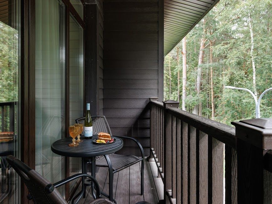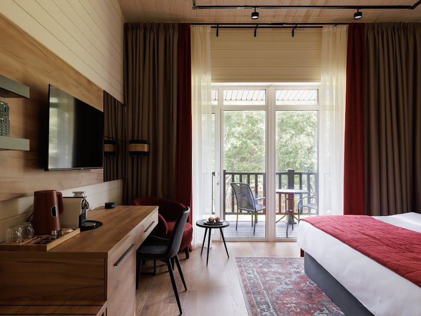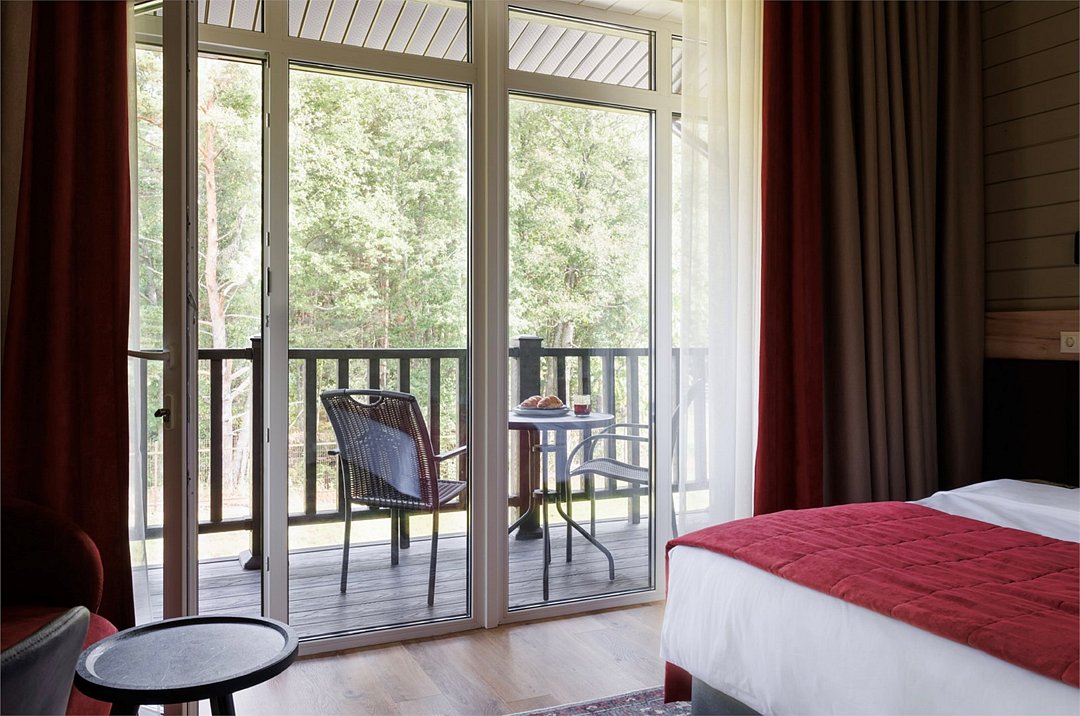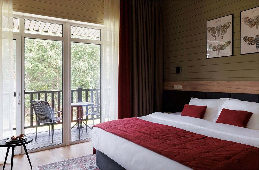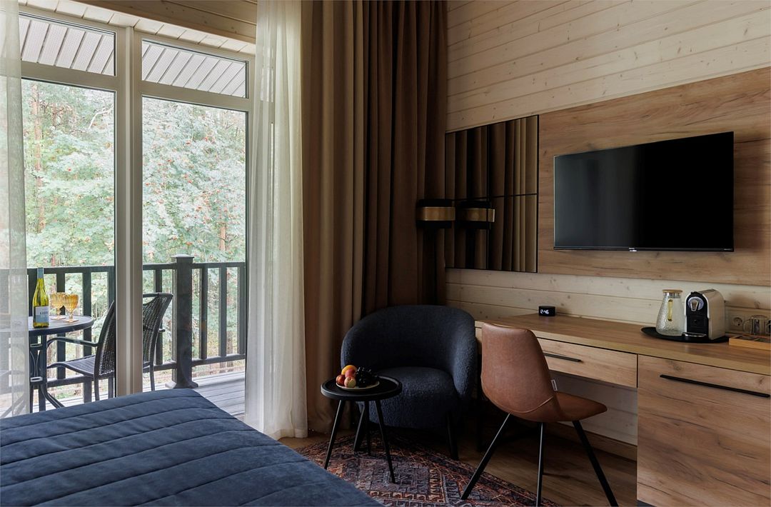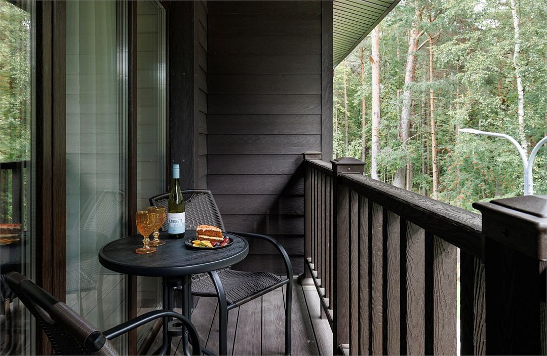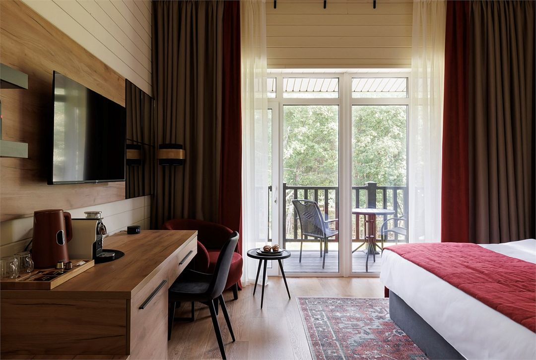 Уютный балкон с садовой мебелью позволит гостю насладиться утренним кофе или чаем под теплыми солнечными лучами, любуясь живописным видом на окружающий лесной массив. Стоит отметить, что номер для некурящих гостей.