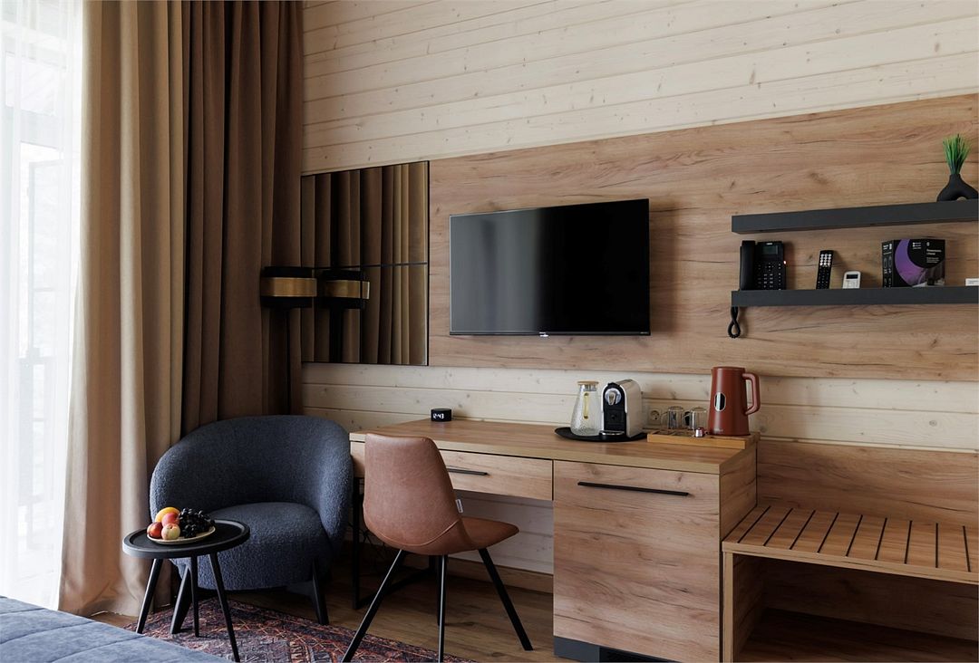 Авторский интерьер в скандинавском стиле создает атмосферу тепла и гармонии, а продуманные детали делают ваш отдых по-настоящему комфортным. Площадь номера 27 кв.м.
