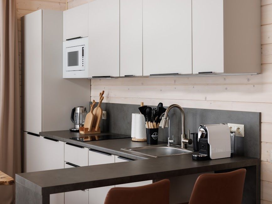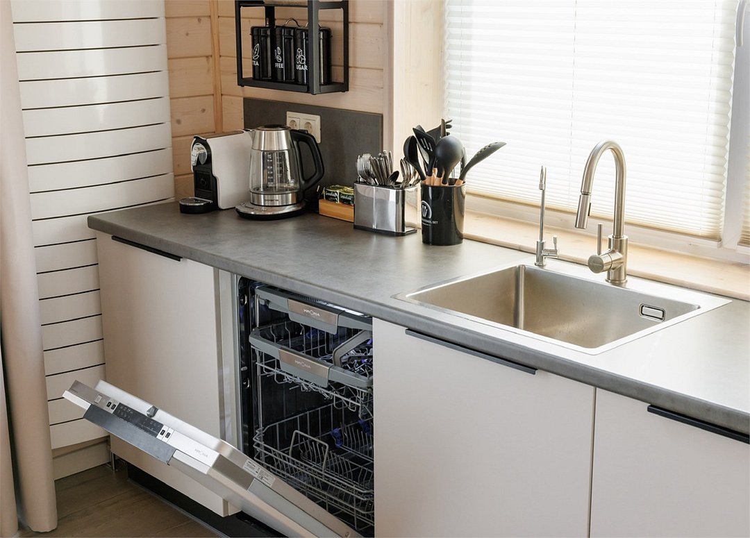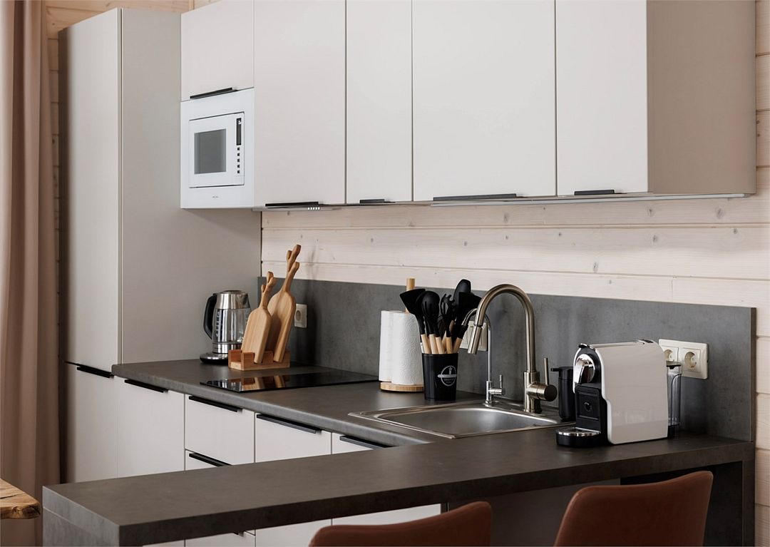 - Кофемашина и чайный набор — для приятного начала дня в любое время