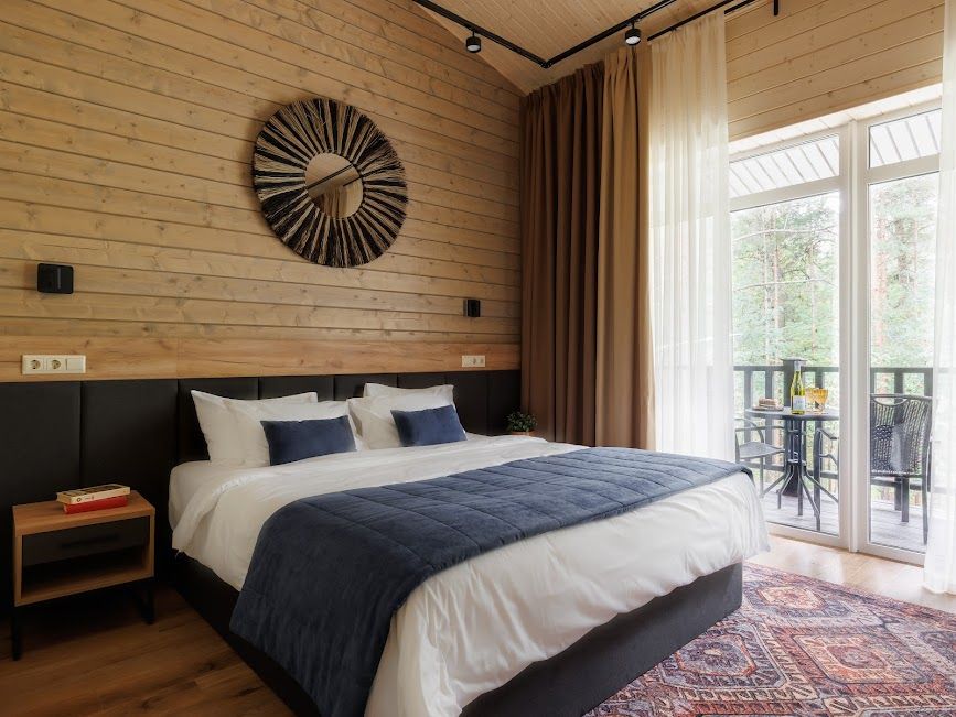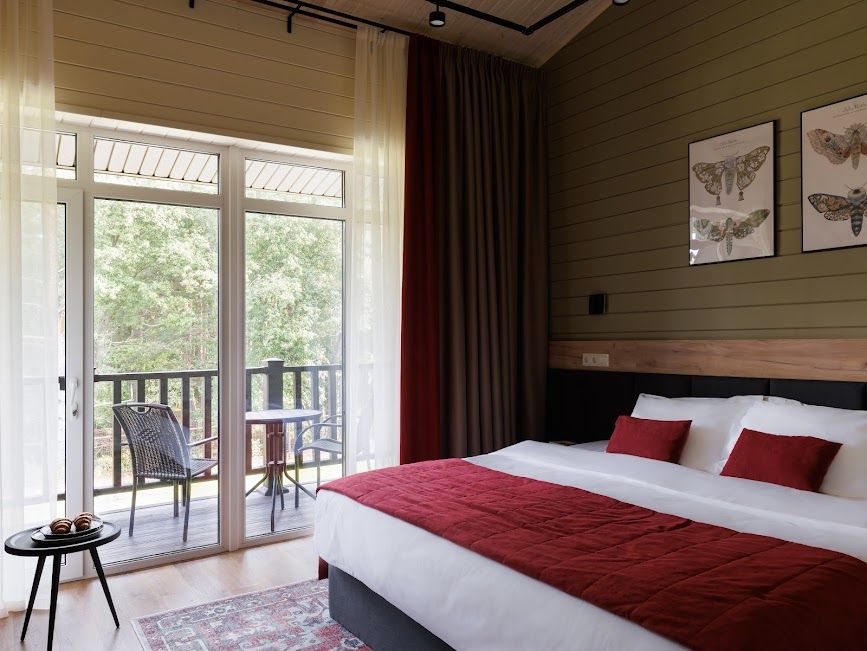 Комфорт с одной большой двуспальной кроватью с балконом и видом на лес