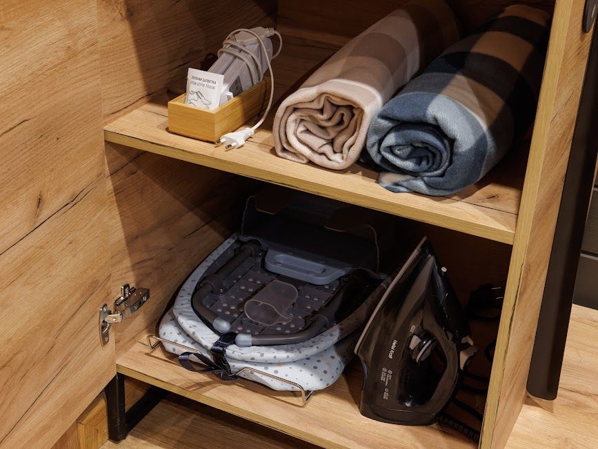 - Утюг и гладильная доска - идеальный образ даже после длительной дороги.